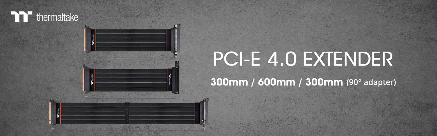 Firma podaje, że to jeden z najlepszych sposobów na odciążenie płyty głównej od kolosalnych kart graficznych, ale oczywiście riser Wam nie wystarczy. Do niego potrzebujecie też odpowiedniego miejsca montażowego w swojej obudowie, która wspiera takie niestandardowe pozycje czy to w pionie, czy poziomie. Dlatego też Thermaltake zapewnia w ramach swoich riserów PCie 4.0 trzy warianty produktu. Dwa z nich obejmują 300-milimetrowe przedłużki (jeden z adapterem do 90 stopni), a jeden 600-milimetrowy już ze standardową pozycją gniazda żeńskiego.