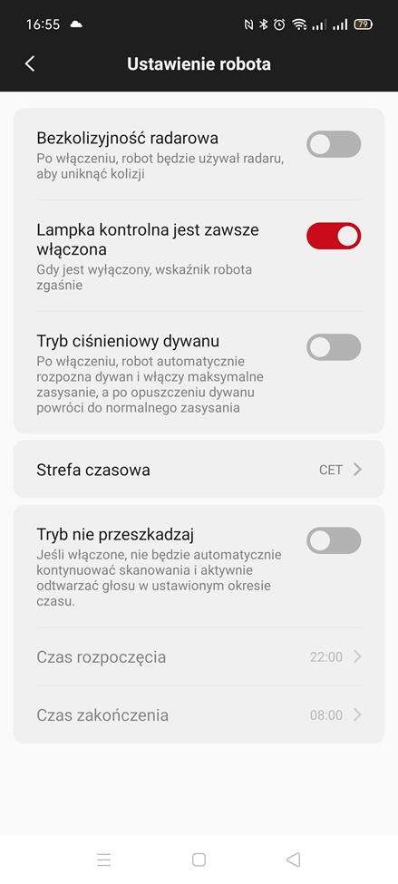 Robotem możecie sterować poprzez aplikację Roidmi albo Xiaomi Mijia. Ja skorzystałem z tej pierwszej opcji. Samo parowanie jest bardzo łatwe – musicie tylko dobrze przeczytać jak zresetować robota i stosować się do wyświetlanych poleceń. Sama aplikacja jest dostępna w języku polskim, choć do idealnego przetłumaczenia trochę tutaj brakuje. Nie jest jednak tak źle i spokojnie możecie korzystać z appki w języku polskim.