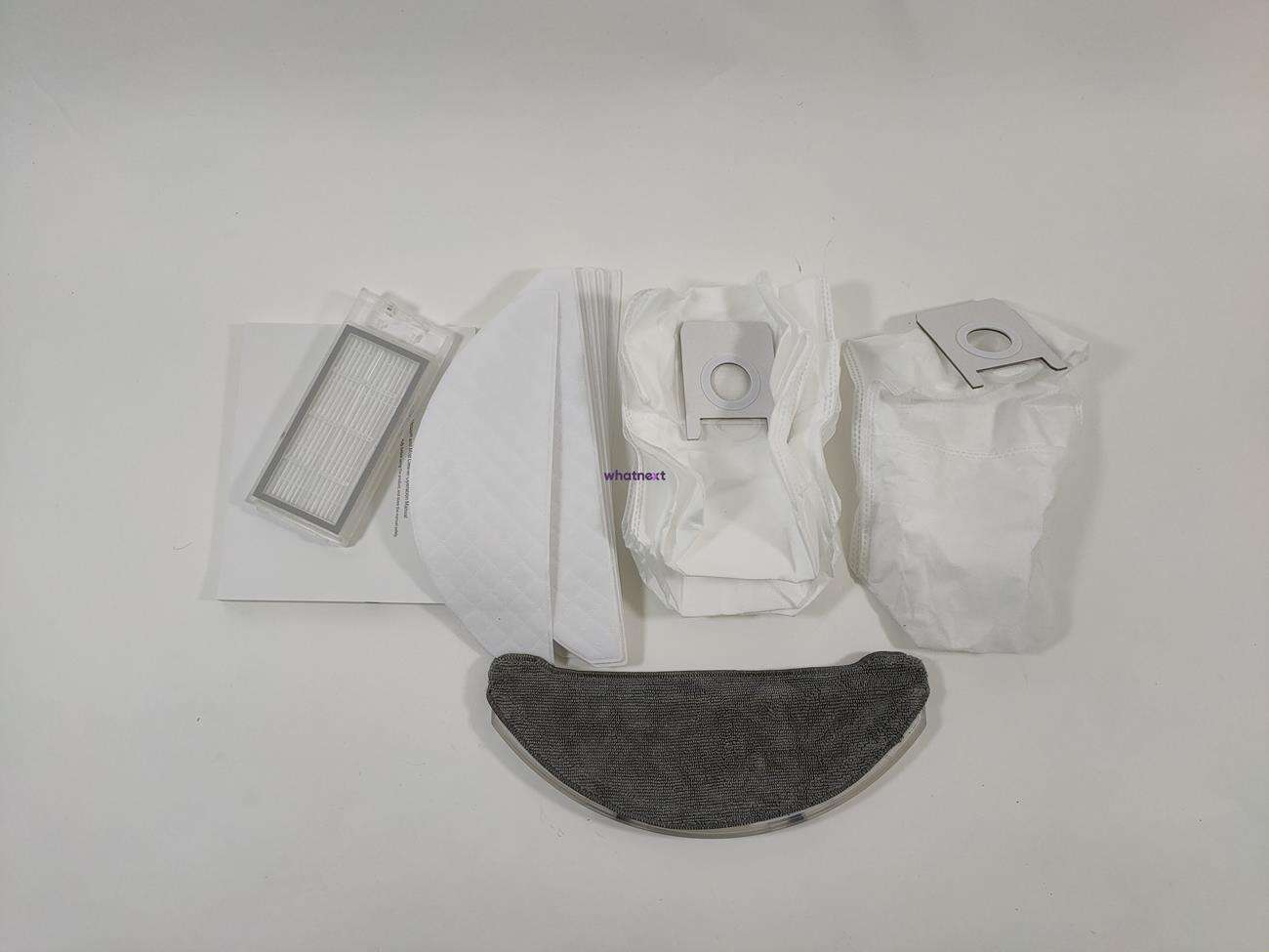 W zestawie otrzymujemy dwa pudełka – jedno od robota i jedno od stacji. Wraz z Roidmi Eve Plus dostajemy dostawkę z mopem, instrukcję, dodatkowy filtr, jednorazowe ściereczki, wielorazową ściereczkę oraz kilka worków na kurz. Ilość dodatków całkowicie wystarcza a sama instrukcja dobrze wyjaśnia konserwację i użytkowanie robota.