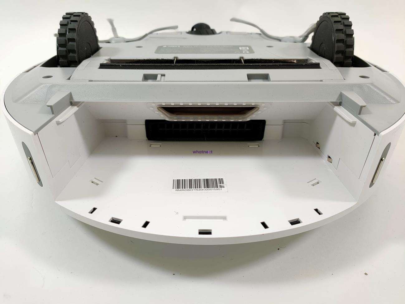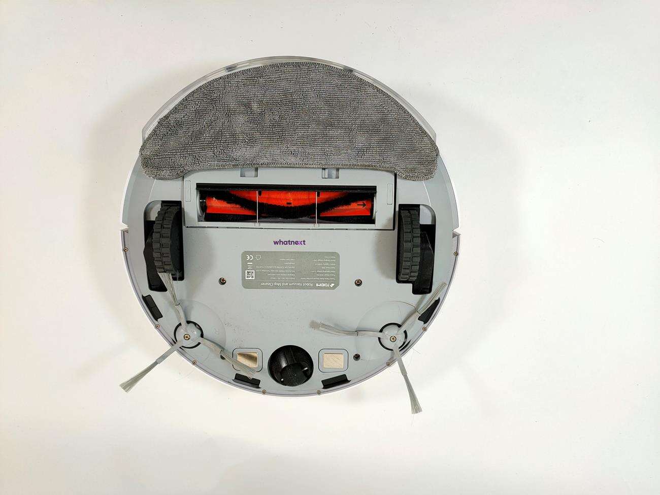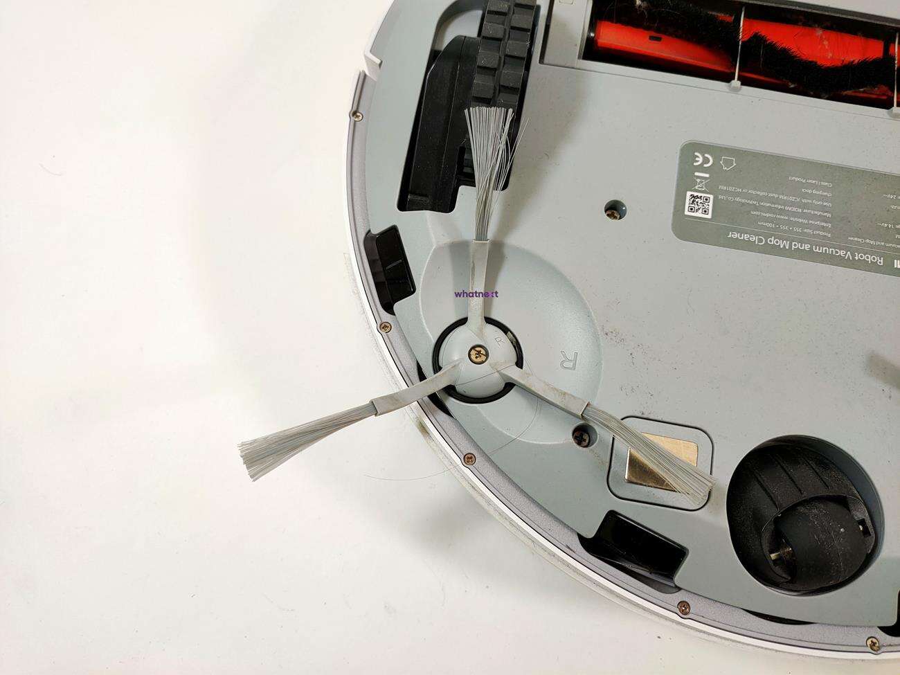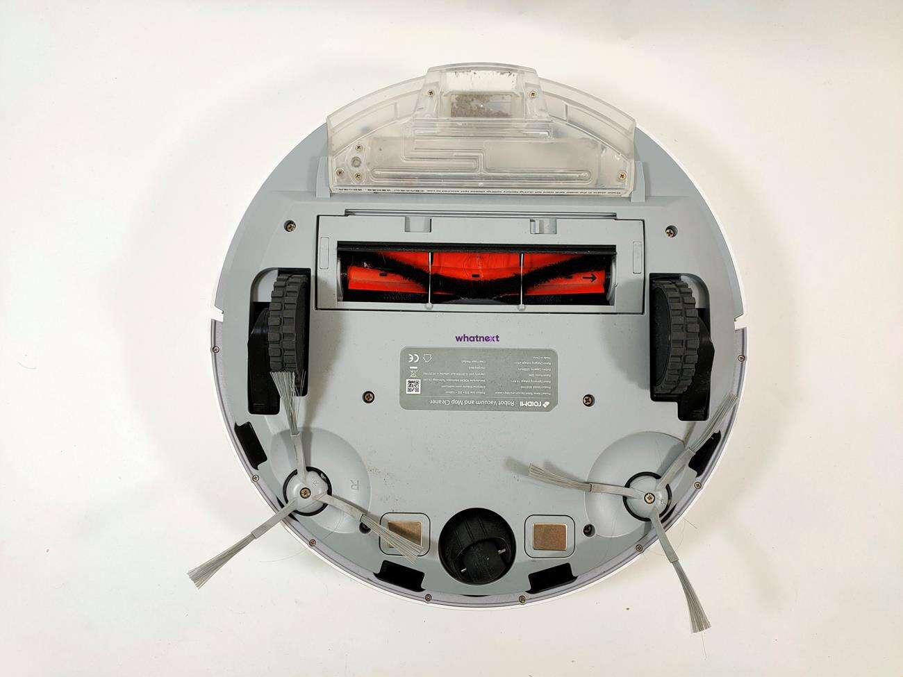 Okrągła konstrukcja sama w sobie mówi, że Roidmi Eve Plus może mieć problemy z czyszczeniem rogów. Tutaj raczej zbytnio nie pomogą boczne szczoteczki, których są dwie sztuki. Główna szczotka ma szerokość ok. 170 mm, czyli jest całkiem duża jak na robota. Można ją łatwo wyjąć i wyczyścić np. z wkręconych włosów.