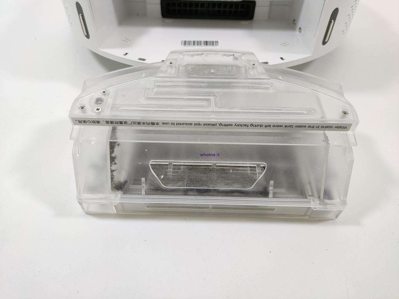 Roidmi Eve Plus ma pojemnik na kurz i wodę jako jedną część. Bardzo łatwo jest ją wyjąć i wyczyścić, więc tutaj nie będzie problemów. Jeśli chcecie użyć opcji mopowania to wtedy na spód dołączacie kolejną część z mopem. Wtedy też robot wykrywa, że ma mopować i zmienia swój tryb pracy. Pojemnik na kurz ma pojemność 300 ml, a na wodę 250 ml. Nie są to wybitne wielkości, ale jeśli ten pierwszy pojemnik się zapełni to Roidmi Eve Plus przerwie pracę i podjedzie do stacji w celu jego opróżnienia. Jedyne co będziecie musieli robić to od czasu do czasu uzupełnić wodę. Dodajcie do tego dużą baterię o pojemności 5200 mAh i zyskacie sprzęt, który jest w stanie wyczyścić 250 m^2 powierzchni lub pracować nawet 250 minut.