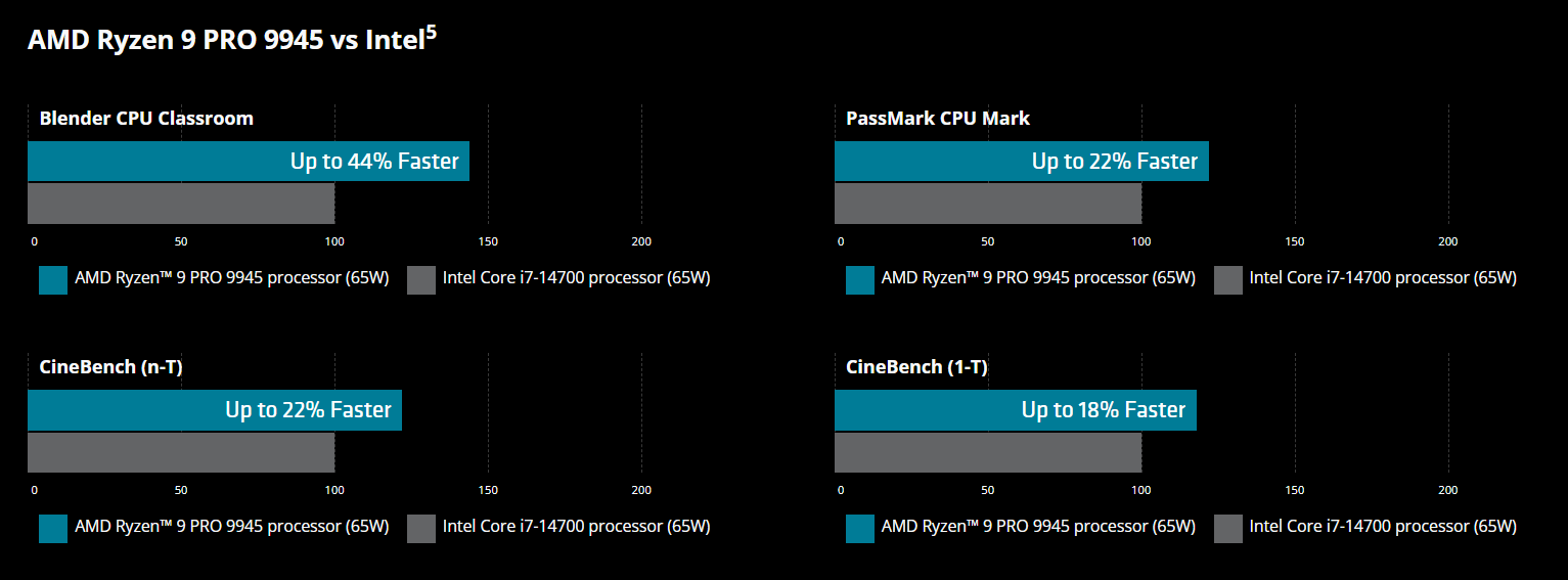 W porównaniu z poprzednią generacją Ryzen 7 PRO zyskał +100 MHz na zegarze boost, natomiast Ryzen 5 PRO zwiększył zarówno taktowanie bazowe (+100 MHz), jak i maksymalne (+300 MHz). Wszystkie trzy modele wykorzystują architekturę Zen 5.