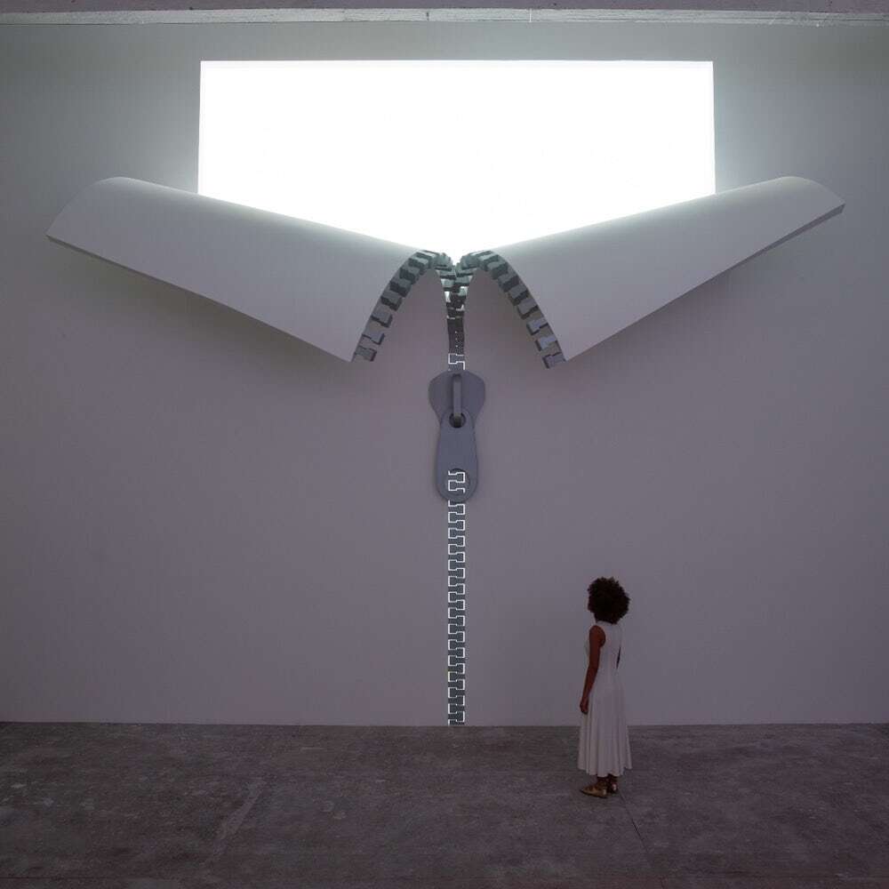 Rozchylony w połowie budynek ujawnia za pozornie przestarzałymi materiałami świecącą się na niebiesko ścianę, co pokazuje nam, jak osiągnięto ten efekt. Okazuje się, że projekt składa się z zewnętrznej elewacji i dwóch innych instalacji wewnątrz: rozpiętej częściowo ściany z zamkiem błyskawicznym i okrągłego otworu w podłodze. I tym razem ujawniają nic więcej, prócz jednolitego światła:
