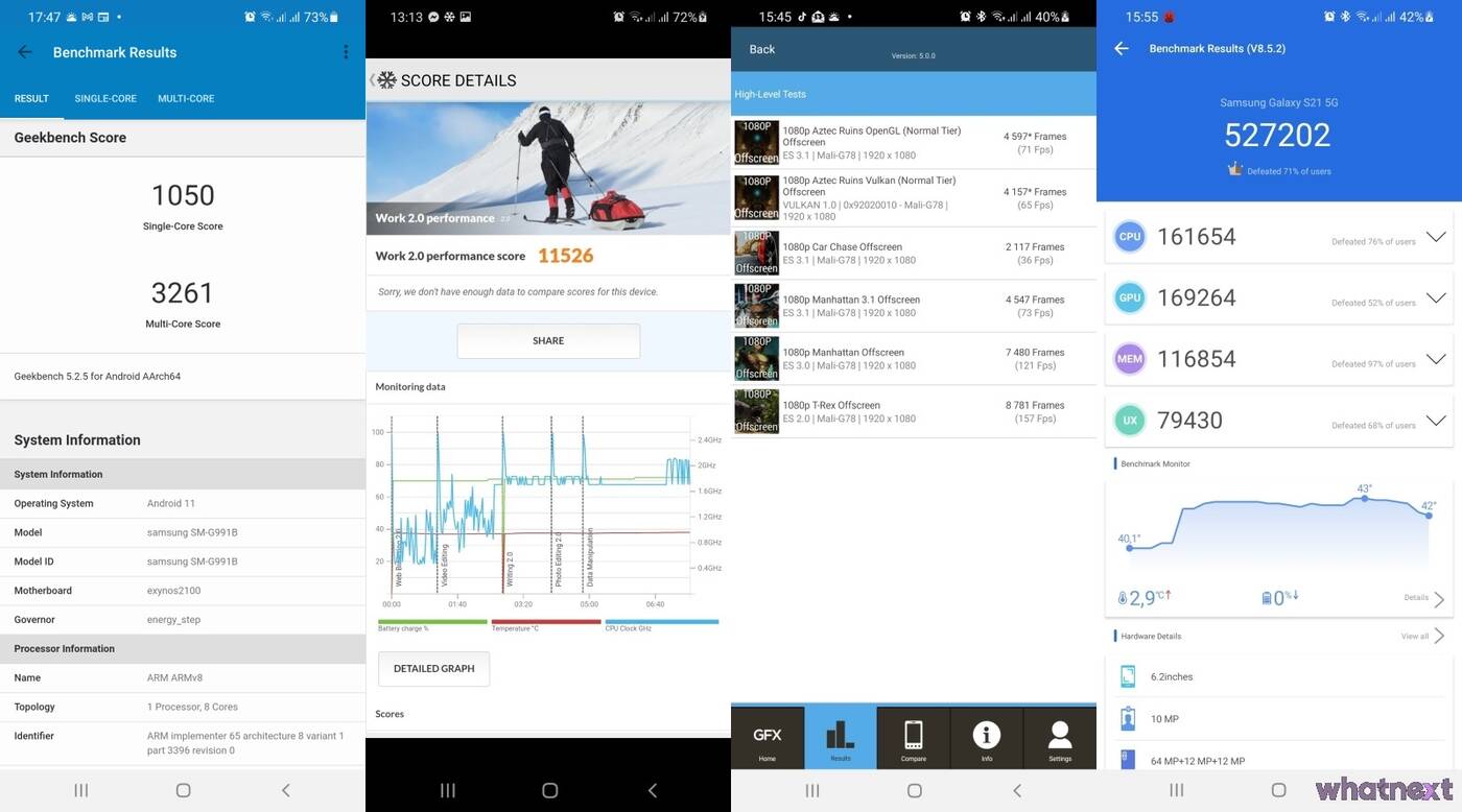 Wyższą wydajność widać w benchmarkach. Podczas gdy w AnTuTu Galaxy S20 osiągnął w naszych testach 437 573 punkty, a Note20 Ultra 500 253 punkty, tak Galaxy S21 uzbierał ich 527 202. Możemy śmiało uznać obietnicę za spełnioną.