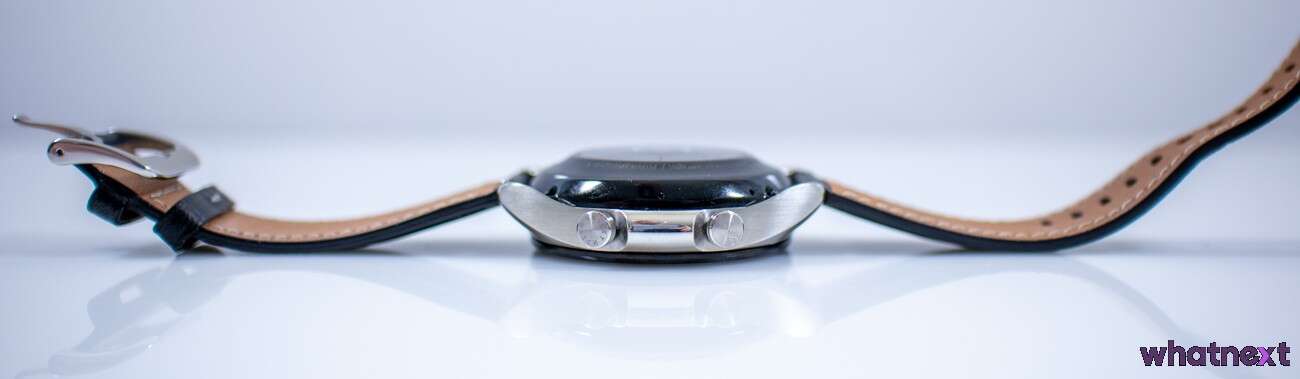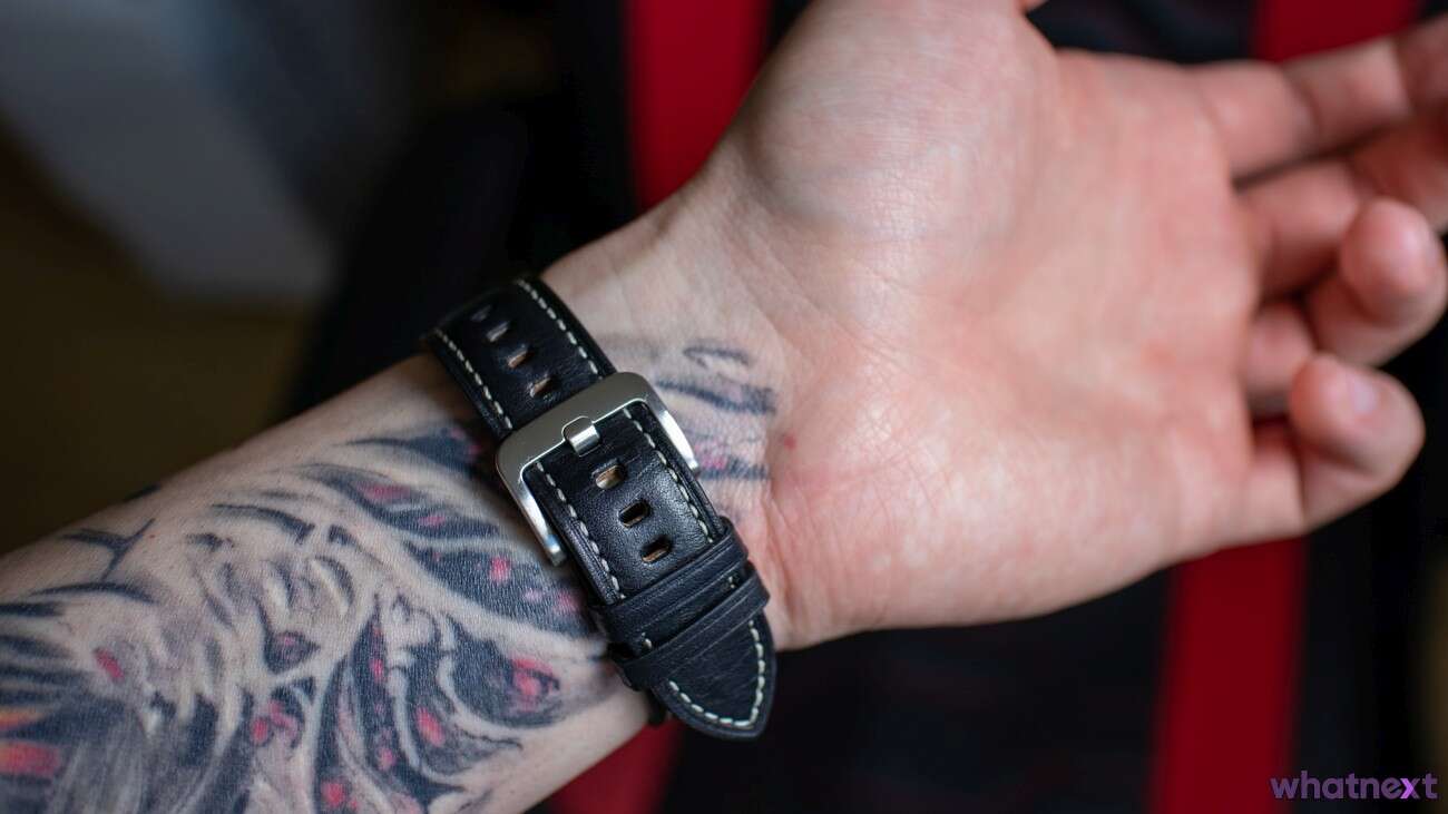Na pokazie przedpremierowym mocno rzuciły mi się w oczy skórzane paski. Były nieziemsko sztywne. Zgodnie z przewidywaniami pasek robi się miękki po kilku dniach, choć po części to może też być lekka zasługa tegorocznych upałów. Nie mniej z czasem pasek ładnie dopasowuję się do ręki, ale też w razie potrzeby zawsze można go wymienić na dowolny inny. W miejscu zapięcia skóra się dosyć mocno marszczy, ale nie wygląda na to, aby miała się w jakiś sposób odkleić lub uszkodzić. Minusem czarnej wersji kolorystycznej jest biała nić, która zwyczajnie zaczyna się za czasem brudzić.