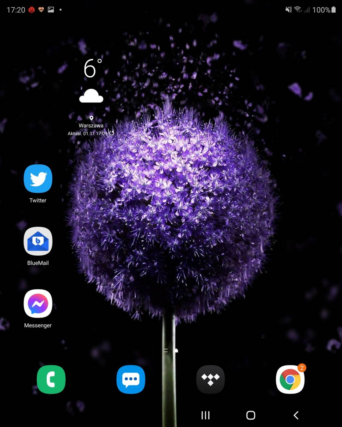 A co z miejscem zgięcia ekranu? Niezmiennie jest widoczne, choć jest zdecydowanie mniejsze niż w przypadku poprzednika. To element, który zawsze rzuca się w oczy osobom, które Folda2 widzą po raz pierwszy, ale już po godzinie użytkowania kompletnie przestajemy na to zwracać uwagę. Nie polecam ustawiania takiej tapety jaką widzicie na zdjęciu. Łodyga dmuchawca znajduje się idealnie w miejscu zgięcia i mało zawału nie dostałem któregoś dnia przekonany, że w dolnej części ekran się uszkodził.
