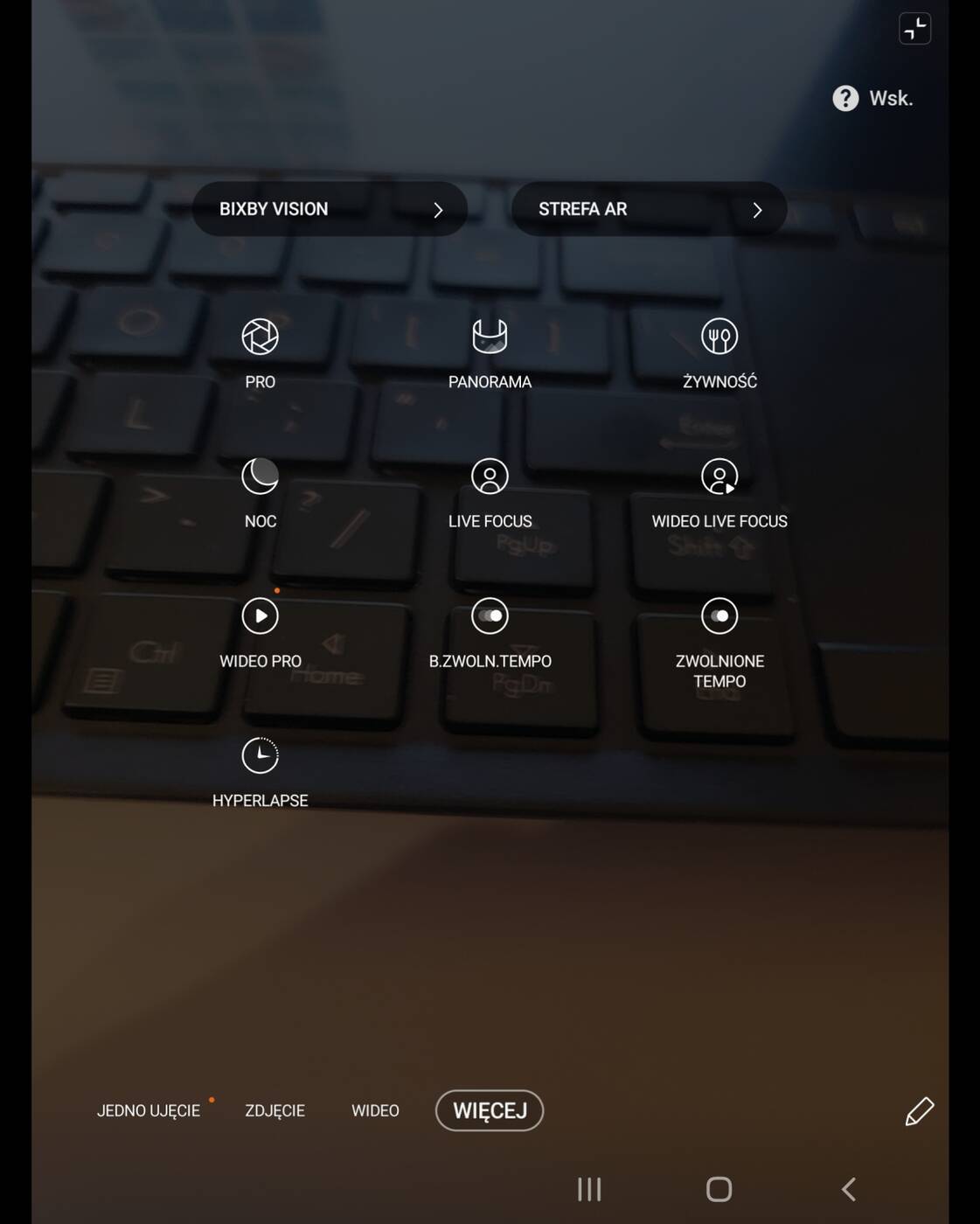 Na deser mamy tryby filmowe, które z pewnością docenią vlogerzy. Podobnie jak w smartfonach Galaxy Note20, tutaj również możemy zamienić dowolne słuchawki Bluetooth w mikrofon w trakcie nagrań. Z kolei śledzenie obiektu przez odpowiednie kadrowanie sceny to coś, co może przydać się tiktokerom. Poprzez automatyczne wycięcie kadru, obraz zawsze będzie skierowany na poruszającym się obiekcie. Możemy więc poruszać się na boki, a Galaxy Z Fold2 inteligentnie zawsze utrzyma nas w centrum kadru. I to wszystko można robić na złożonej do połowy obudowie.