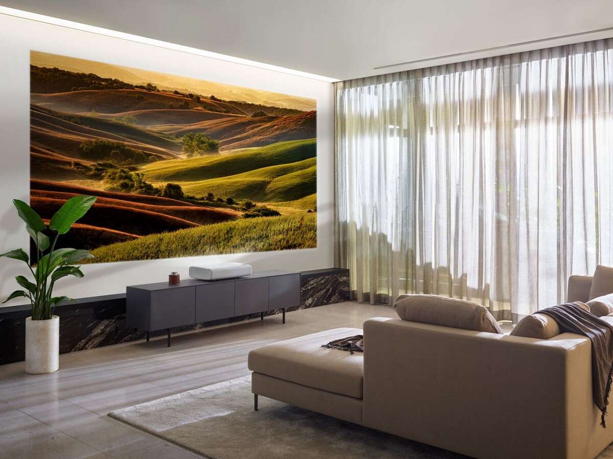 Marzysz o kinowych wrażeniach w domu? Cóż, w obecnej sytuacji ten produkt jest wprost idealny, by móc stworzyć w mieszkaniu kino domowe z prawdziwego zdarzenia. The Premiere to projektor wykorzystujący Technologię Potrójnego Lasera w modelu LSP9T. Oferuje nam jasny obraz niesamowitej jakości, wsparcie HDR10+ i funkcję Filmmaker Mode, a nawet rozdzielczość 4K. Obraz może być nawet 130-calowy ( lub 120-calowy, w zależności od wybranej przez nas wersji), to już zależy od tego, na co pozwoli nam nasza ściana i wielkość pokoju.