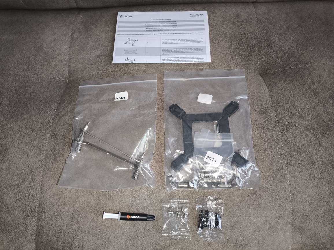 W środku opakowania można spodziewać się standardowego dla Savio, dobrze uporządkowanego układu — chłodzenie zabezpieczone jest w formowanej wytłoczce, która chroni zarówno radiator, jak i blokopompkę przed uszkodzeniami mechanicznymi. Wentylatory powinny być zapakowane osobno, podobnie jak komplet montażowy oraz dokumentacja.