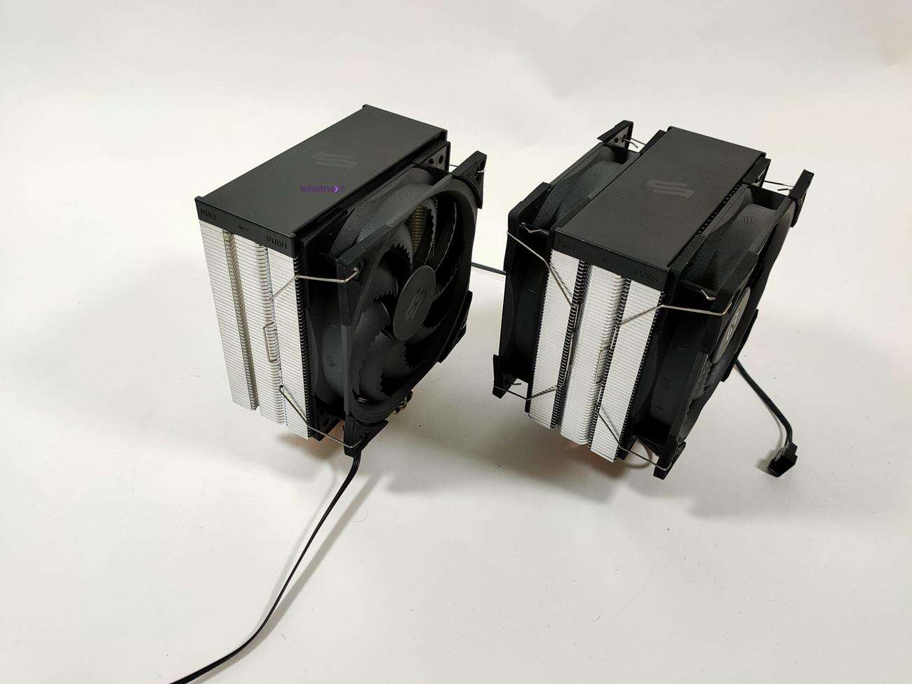 Oba chłodzenia mają tylko jedną różnicę – jest nim ilość wentylatorów. Poza tym są dokładnie takie same. Nie mają one podświetlenia RGB, ale na pewno plusem jest górna czarna nakładka. Dzięki temu nie będzie widać w obudowie końcówek ciepłowodów. Te sa widoczne pod kątem, ale po montażu nikt nie zwróci na to uwagi. W obudowie z oknem całość nie będzie się niczym wyróżniała, ale też nie będzie źle wyglądała.