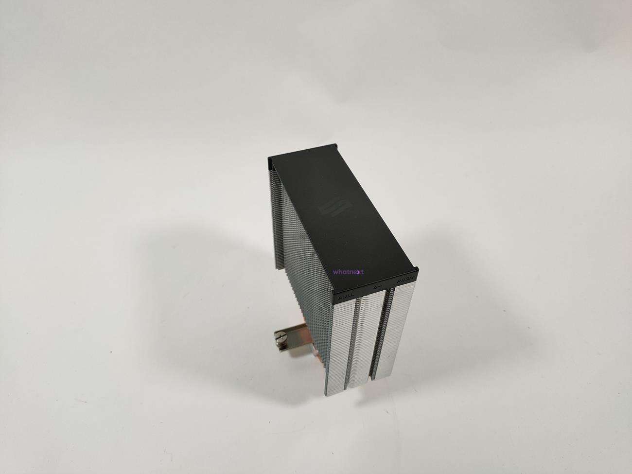 Radiator ma wymiary 127 mm x 102 mm x 155 mm, więc bez problemów zmieści się w większości obudów. Nie powinien też nachodzić na pamięci RAM. Ma on cztery 6 mm ciepłowody, które bezpośrednio dotykają procesora. Są one miedziane i producent nie zdecydował się na ich poniklowanie, natomiast i tak powinno ich widać w obudowie z oknem. Radiator ma też 56 finów.