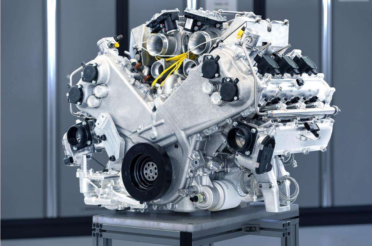 Wiemy też, że to silnik w stylu „gorącego V” z zaworami wydechowymi skierowanymi do wewnątrz, a nie na zewnątrz, co oznacza, że ​​dwie turbosprężarki znalazły się między rzędami cylindrów i wykorzystują maksymalne ciśnienie gorącego powietrza do obracania turbin. Układ będzie też pracował na suchej misie olejowej.