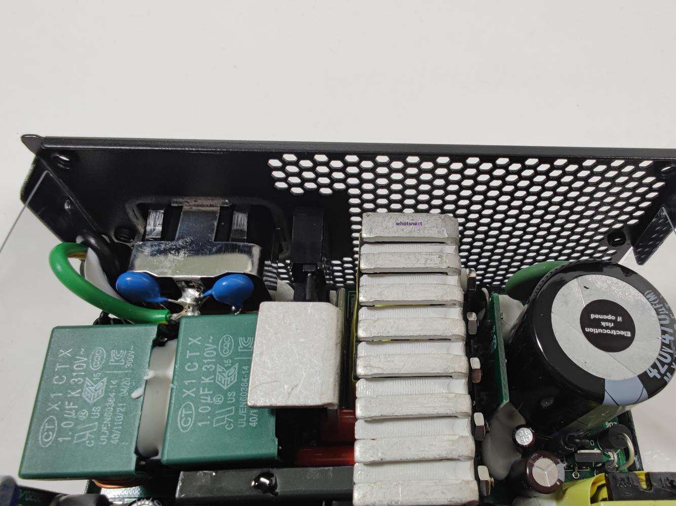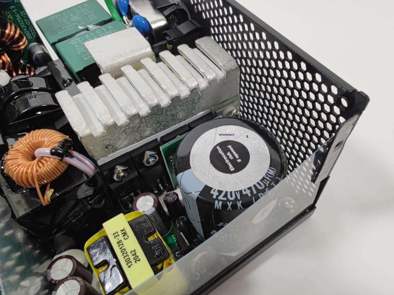 Wszystkie kondensatory elektrolityczne są produkcji japońskiej. Za największy odpowiada Rubycon, a jego parametry to 420 V i 470 uF. Oczywiście nie zabrakło aktywnego PFC czy dobrze wykonanego wnętrza. Zastosowane zabezpieczenia to: zabezpieczenie nadnapięciowe (OVP), zabezpieczenie nadprądowe (OCP), zabezpieczenie przed nadmierną temperaturą (OTP), zabezpieczenie nadmocowe (OPP) oraz zabezpieczenie przed zwarciem (SCP).