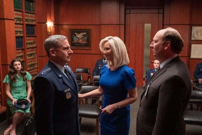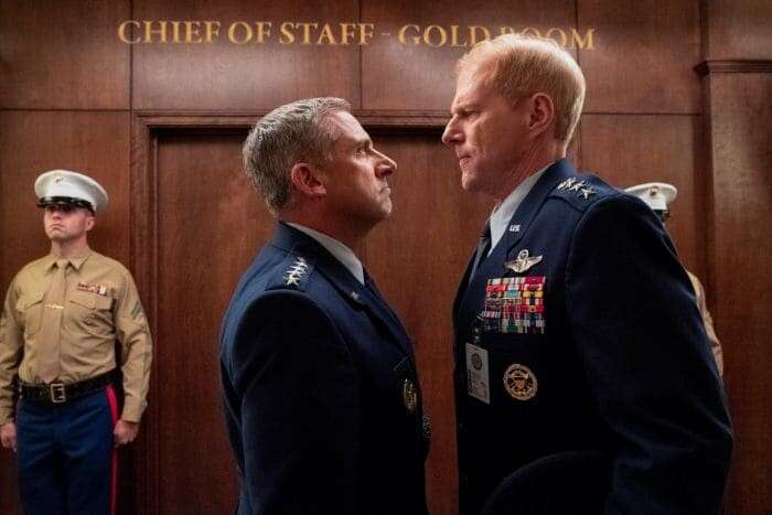 Netflix zebrał iście gwiazdorską obsadę do swojego nowego serialu. Steve Carell zagra główną rolę, ale na ekranie będą towarzyszyć mu m.in. John Malkovich, Diana Silvers, Tawny Newsome, Ben Schwartz, Lisa Kudrow, Jimmy O. Yang, Noah Emmerich, Alex Sparrow i Don Lake. Carell wcieli się w Generała Marka R. Nairda zaś Lisa Kudrow w jego ukochaną żonę Maggie.