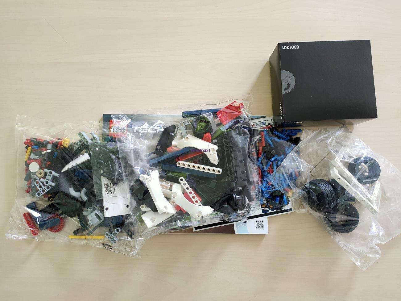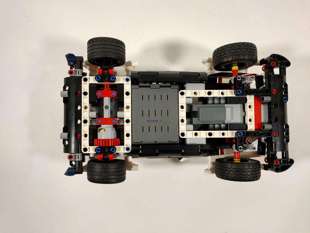 W zestawie jak zawsze znajdziemy wszelkie niezbędne klocki oraz instrukcję. Pamiętajcie jednak, że nie ma dołączonych sześciu baterii AA – musicie je osobno dokupić, aby móc jeździć złożonym autem.