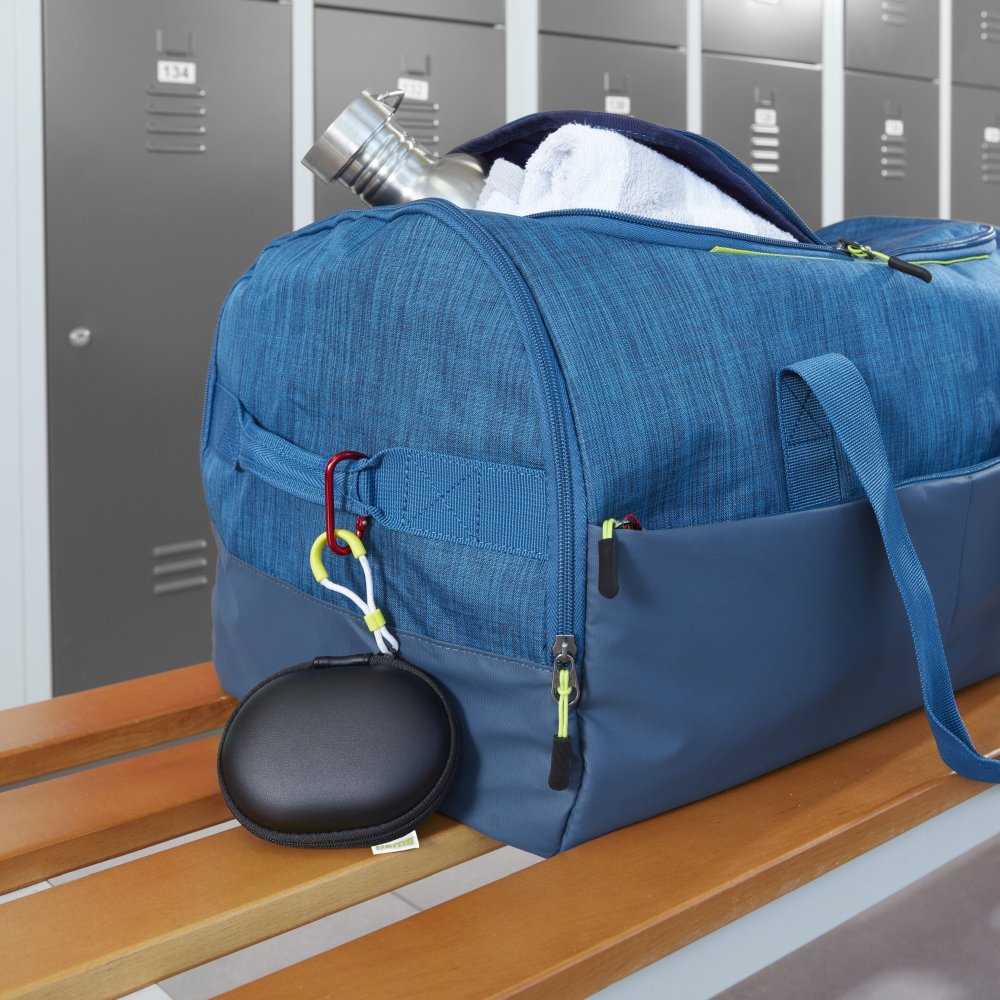 A skoro o etui mowa, wyróżnia się on charakterystycznym karabińczykiem. Tak oto łatwo możemy przypiąć pokrowiec ze słuchawkami dousznymi do szlufki plecaka, saszetki lub torby sportowej, a także schować w kieszeni kurtki czy spodni.