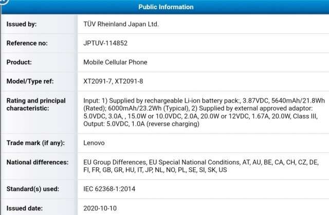 Smartfon będzie dostępny w kilku wersjach: XT2091, XT2091-3, XT2091-4 i XT2091-7. Na rynek trafi też XT2091-8, ale będzie on sprzedawany pod marką Lenovo.