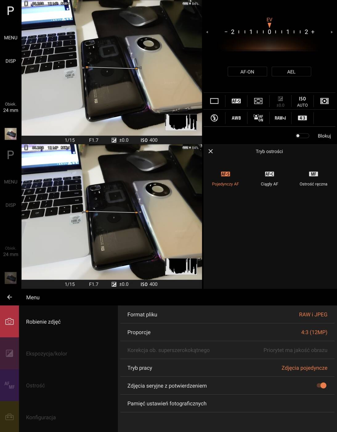 Photo Pro imituje na ekranie Menu znane z aparatów Sony. Mamy dostęp do szeregu ustawień, takich jak metoda działania aufotofocusu, obszar ustawiania ostrości, regulację ekspozycji, czy czułości. Wszystkim możemy sterować ręcznie lub zdać się na pełną automatykę. Co docenią osoby mniej doświadczone. W zasadzie jedynym minusem jest to, że podgląd obrazu jest w aplikacji mniejszy niż w klasycznej aplikacji Aparatu. Nie mniej sam wygląd programu w połączeniu z fizycznym spustem migawki sprawdzają się genialnie. To zdecydowanie najwygodniejsza metoda fotografowania smartfonem z jaką miałem styczność przez ostatnich kilka lat. Warto też dodać, że wspomniany wcześniej autofocus ustawiany na oku, również zwierząt, działa tylko w Camera Pro. I działa zaskakująco celnie i sprawnie.