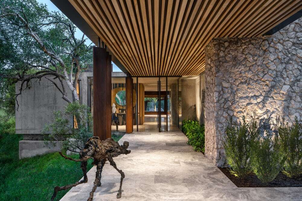 Chcieliśmy stworzyć afrykańską duchową świadomość buszu i dlatego stworzyliśmy prostotę, zawężając nasze wykończenia i upraszczając nasze elementy architektoniczne. Używanie betonu i skał z lokalnego kamieniołomu zachowało integralność budynku, podczas gdy zardzewiałe metale dodały do jego afrykańskiego uroku.