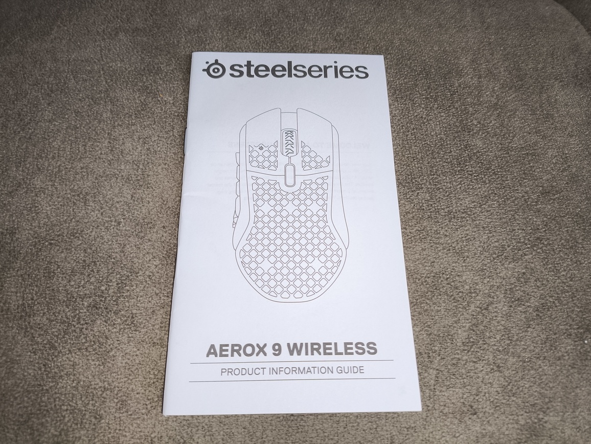 Poza samą myszą SteelSeries Aerox 9 Wireless w zestawie znajdziemy: