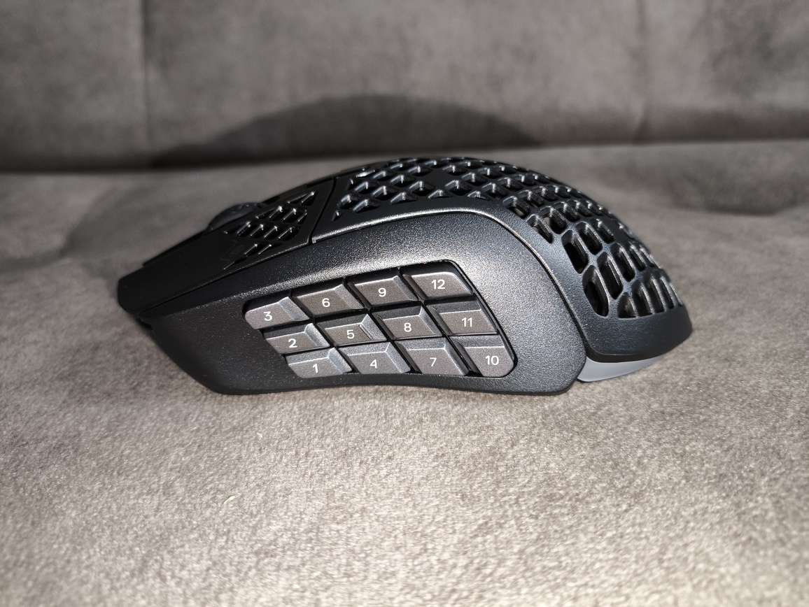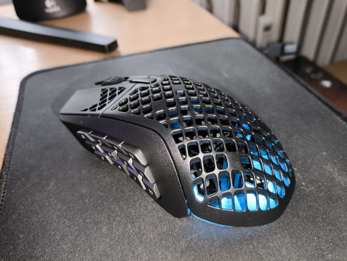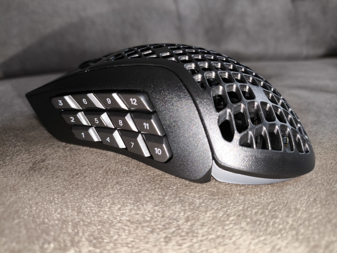 Pewne zastrzeżenia można mieć do konstrukcji mechanicznej. Choć ogólna jakość wykonania jest dobra, widoczne są drobne niedociągnięcia, jak szczeliny w przedniej części obudowy czy mniej stabilne panele boczne. Dodatkowo zastosowanie licznych elementów (w tym 12 przycisków i zmodyfikowanej rolki) wpłynęło na wzrost masy – do około 88–89 gram, co jak na mysz MMO jest wynikiem dobrym, ale jednocześnie ogranicza jej uniwersalność.