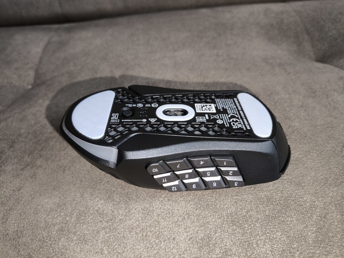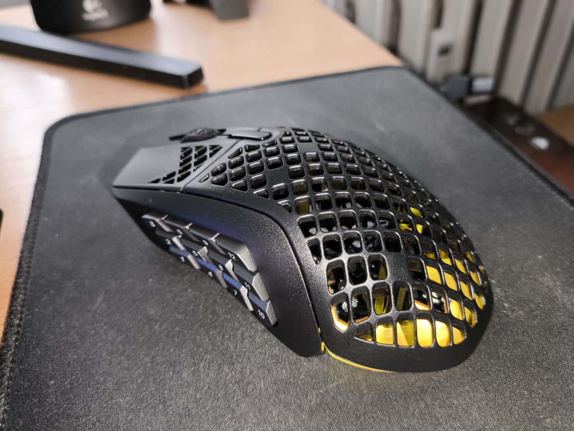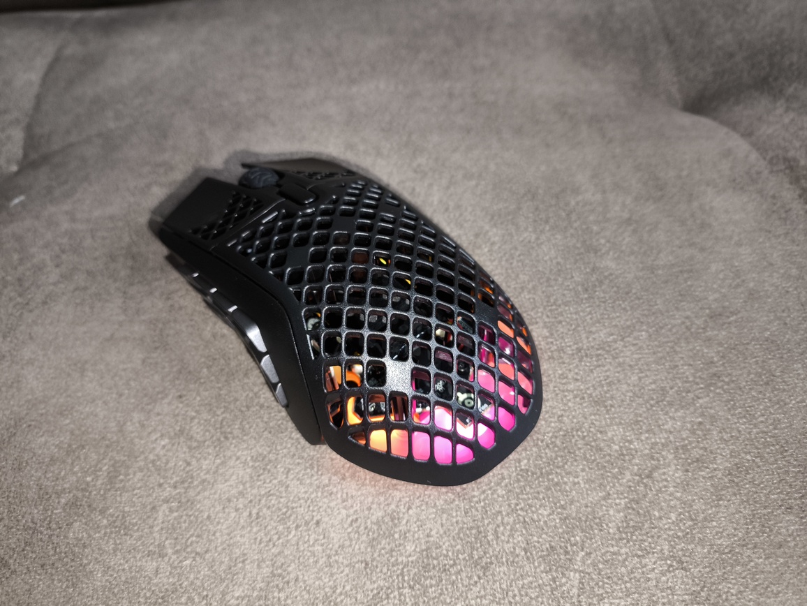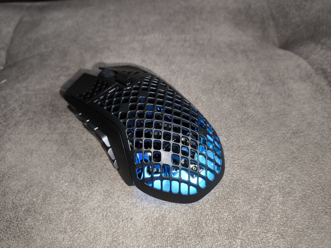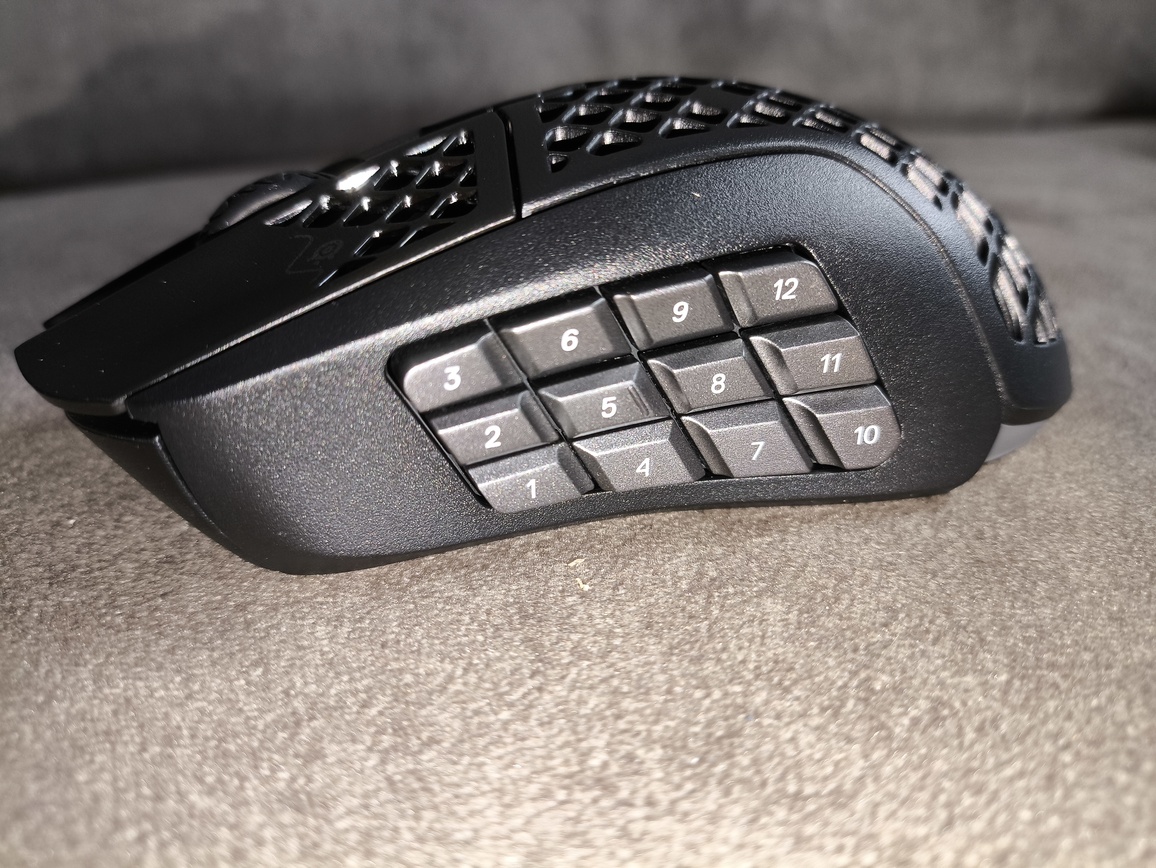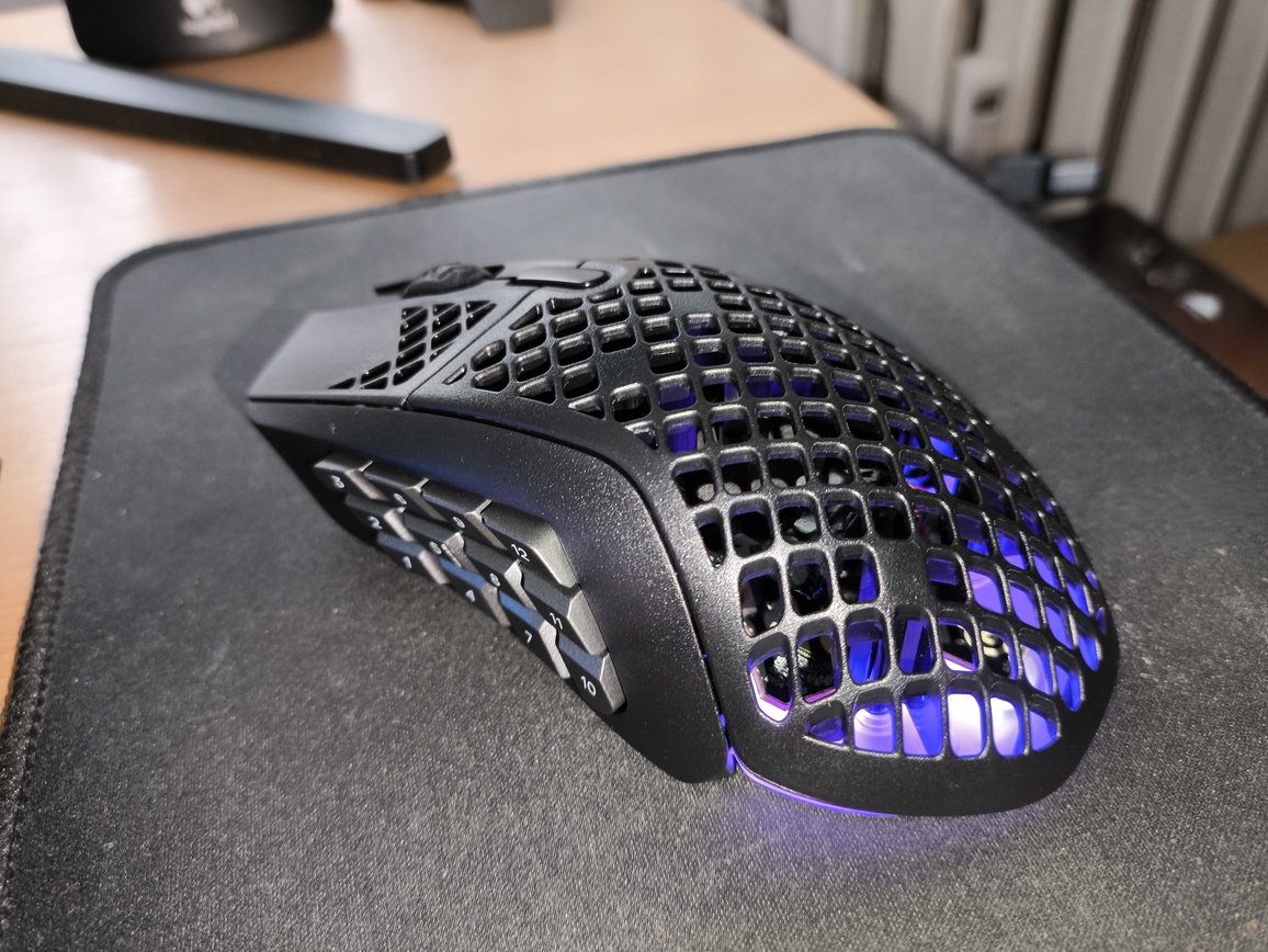 W praktyce sprawia to, że SteelSeries Aerox 9 Wireless nie jest najlepszym wyborem do szybkich strzelanek sieciowych, gdzie liczy się maksymalna lekkość i błyskawiczna reakcja. Znacznie lepiej odnajduje się natomiast w grach strategicznych, MOBA, MMO czy RPG, gdzie duża liczba przycisków bocznych staje się realnym atutem. Możliwość przypisania do nich umiejętności, makr czy skrótów znacząco zwiększa komfort rozgrywki, a całość można łatwo skonfigurować w oprogramowaniu SteelSeries GG.