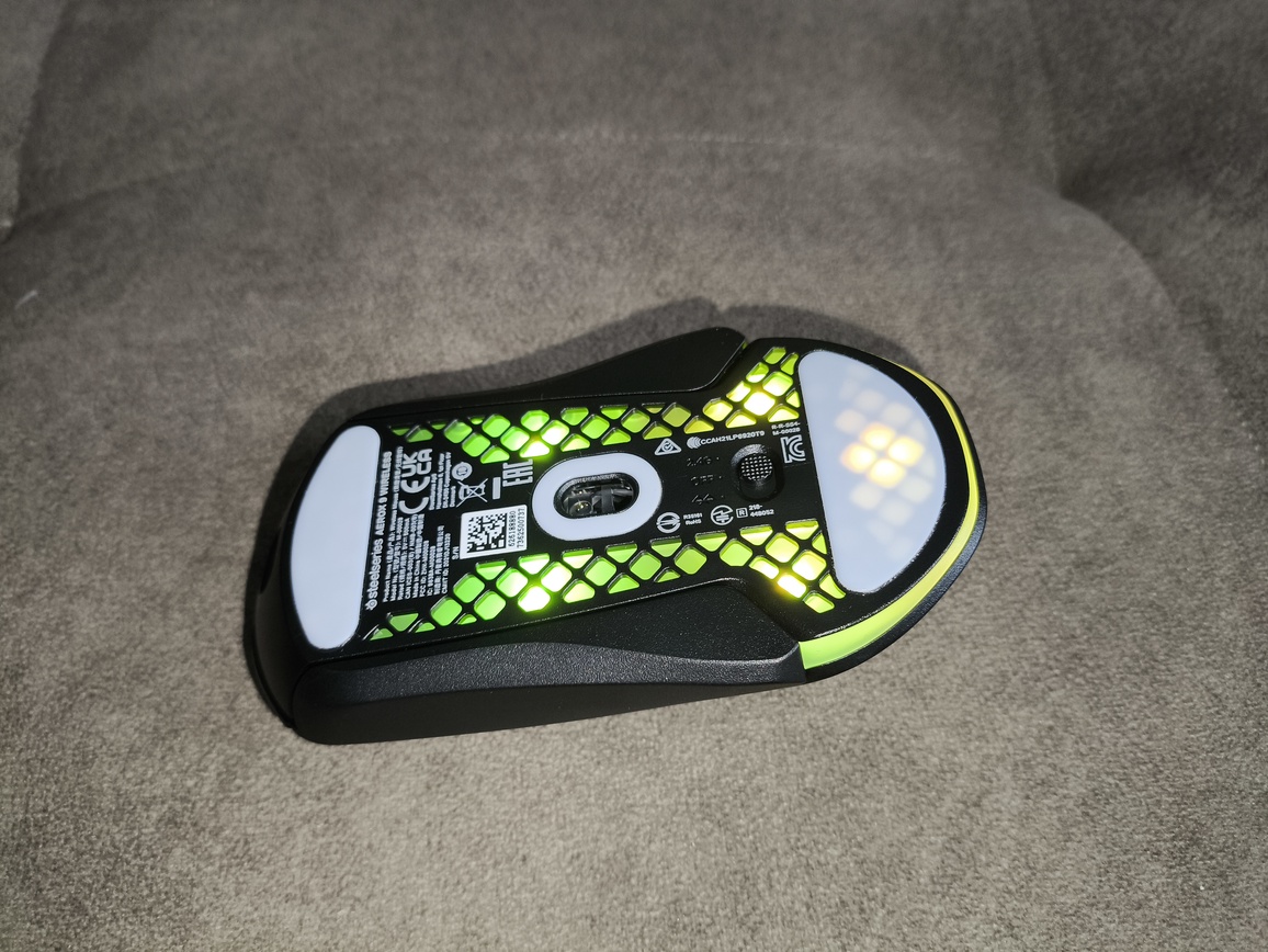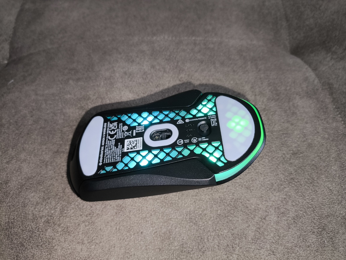 Pod względem sensora i łączności mysz prezentuje poziom znany z innych modeli SteelSeries. SteelSeries TrueMove Air oferuje stabilne śledzenie i niski motion delay (~1 ms), choć nie jest wolny od wad – zauważalne odchylenia CPI oraz drobne anomalie w polling rate mogą się sporadycznie pojawić. W praktyce jednak w zastosowaniach MMO nie mają one większego znaczenia.