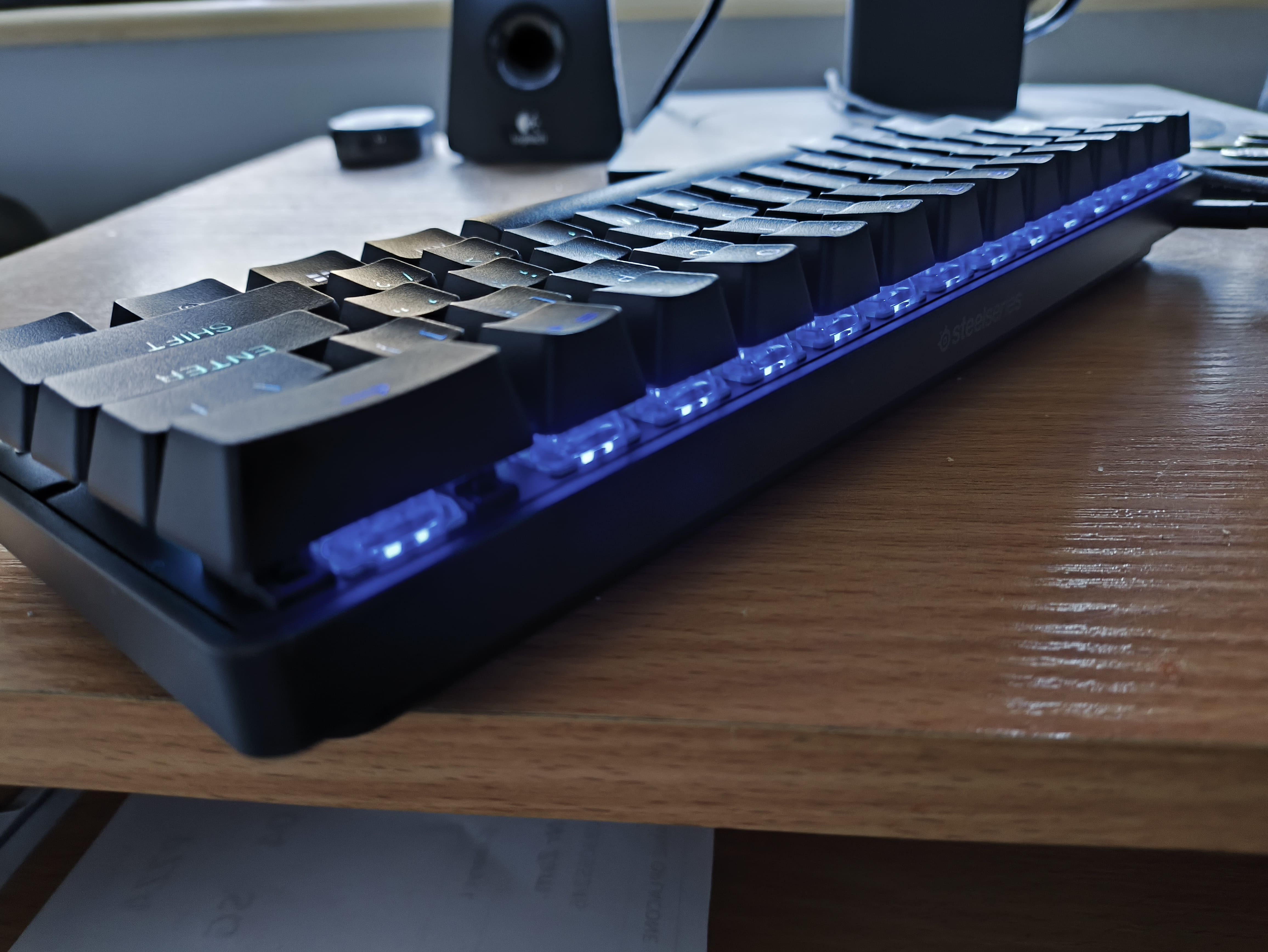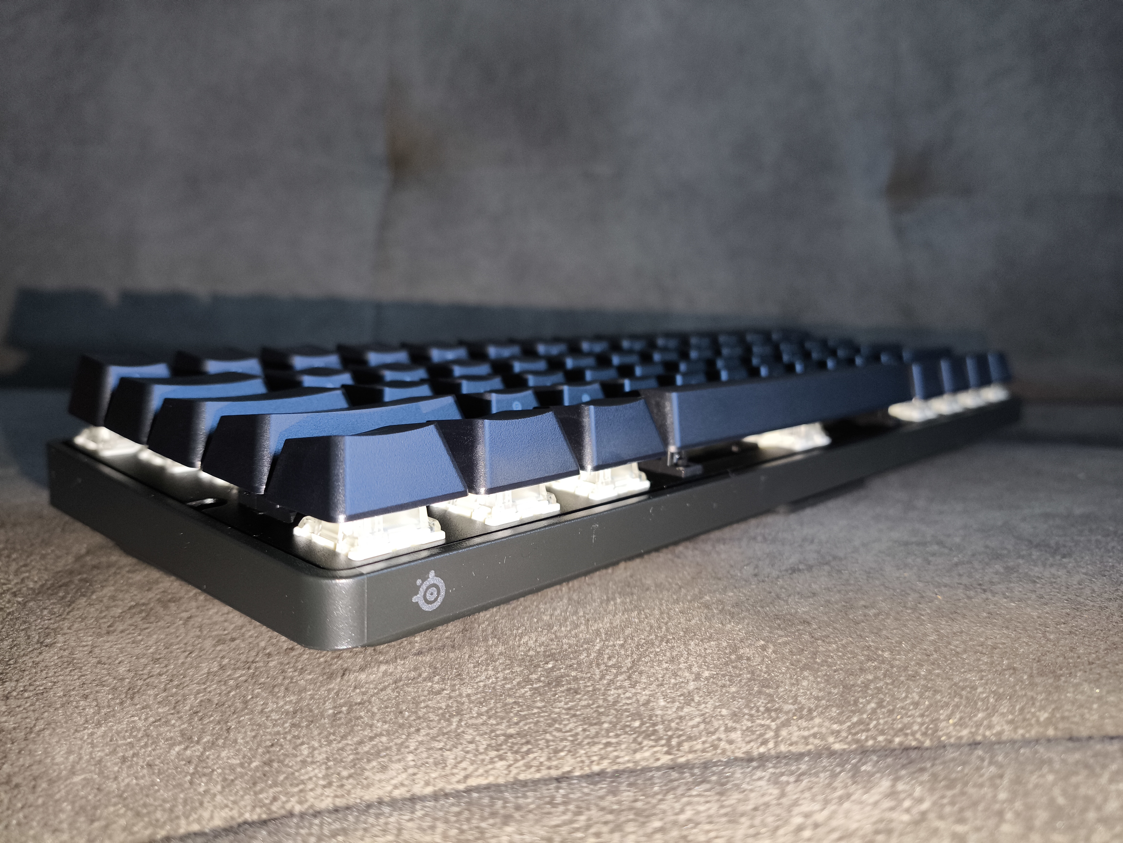 Apex Pro Mini Gen 3 to klawiatura w formacie 60%. Projekt jest utylitarny i minimalistyczny, rezygnujący z klawiatury numerycznej, rzędu funkcyjnego (F-keys) i strzałek, aby zwolnić cenne miejsce na biurku dla myszy.