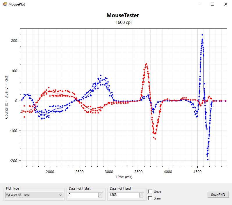 Rival 5 stara się trzymać spójny poziom odświeżania na poziomie 1000 Hz i wychodzi mu to całkiem dobrze, ale pod kątem interpolacji oraz jiterringu wysokiej częstotliwości zauważalną czkawkę łapie już przy poziomie 3200 DPI. Osobiście zalecam nawet nie przekraczać wartości 2400/2600 DPI, aby zapewnić sobie możliwie najwyższą jakość, która w przypadku tej myszki jest… dobra z plusem, ale nic poza tym.