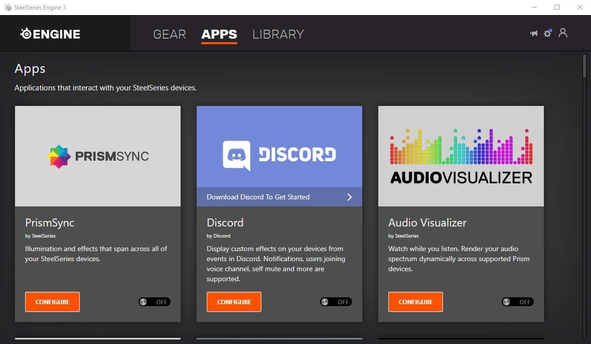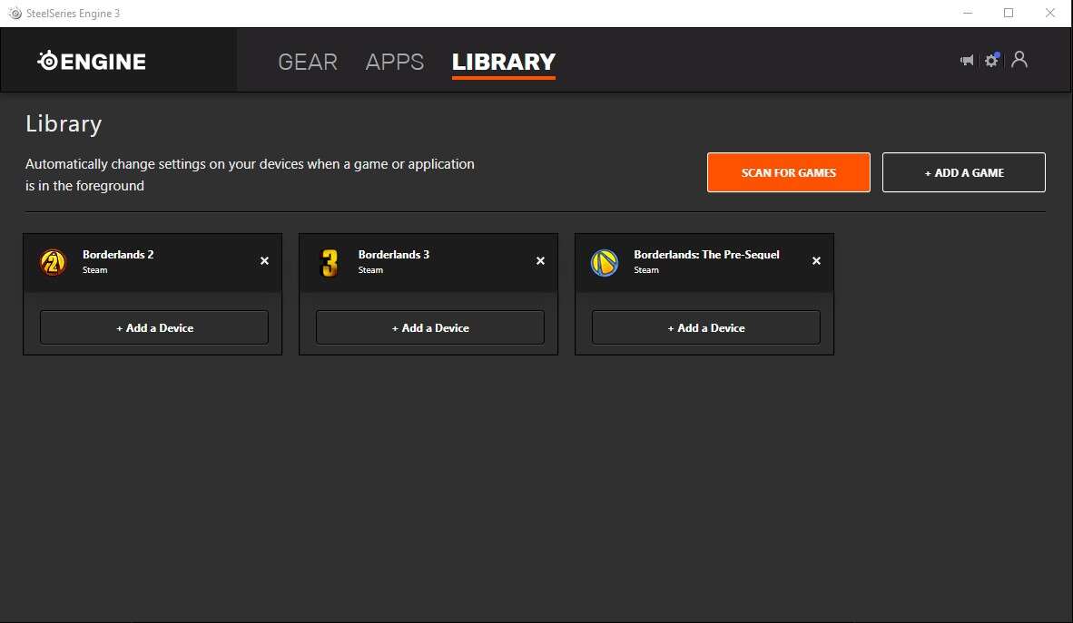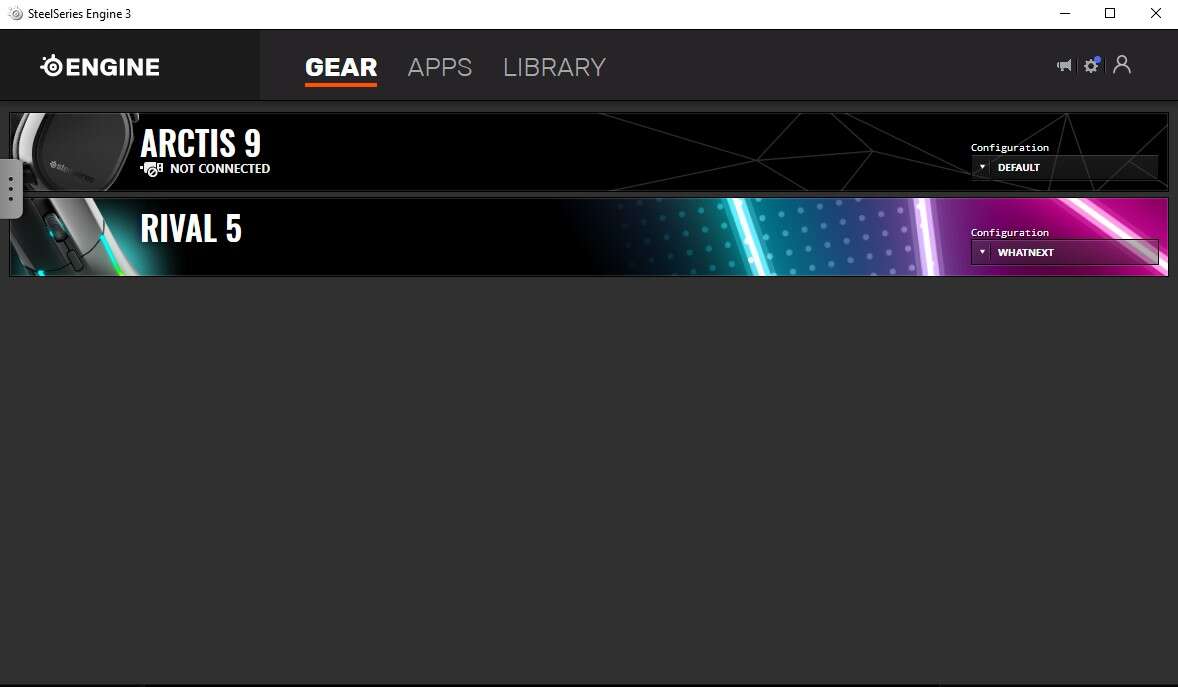 SteelSeries, jak praktycznie wszyscy giganci na rynku peryferiów, postarało się o jedną aplikację do wszystkich nowych sprzętów i nie inaczej jest z Rival 5. Oprogramowanie i aktualizacji firmware do tej myszki pobierzemy za pośrednictwem HUBu Engine 3, który to w pierwszym menu pozwala nam na podejrzenie podłączonego sprzętu, dorzuceniu kilku dodatków, czy sparowaniu sprzętu z poszczególnymi grami.