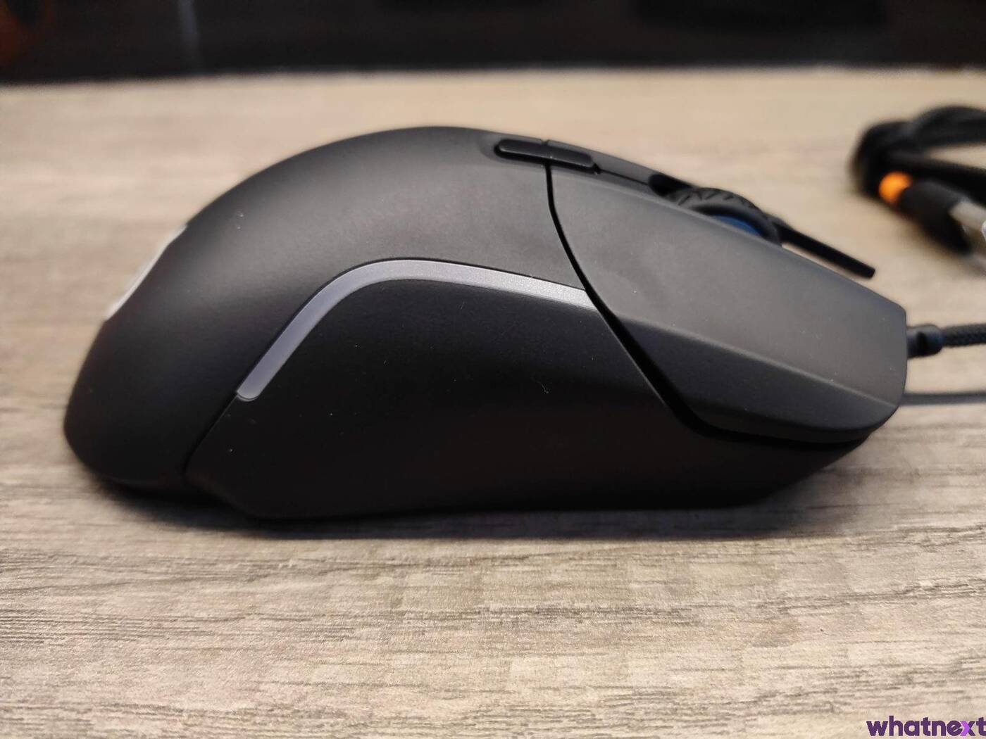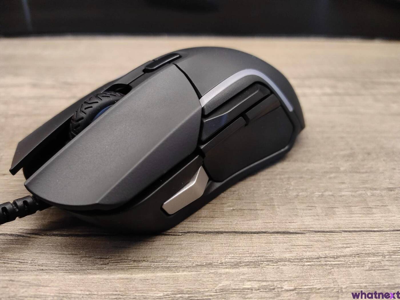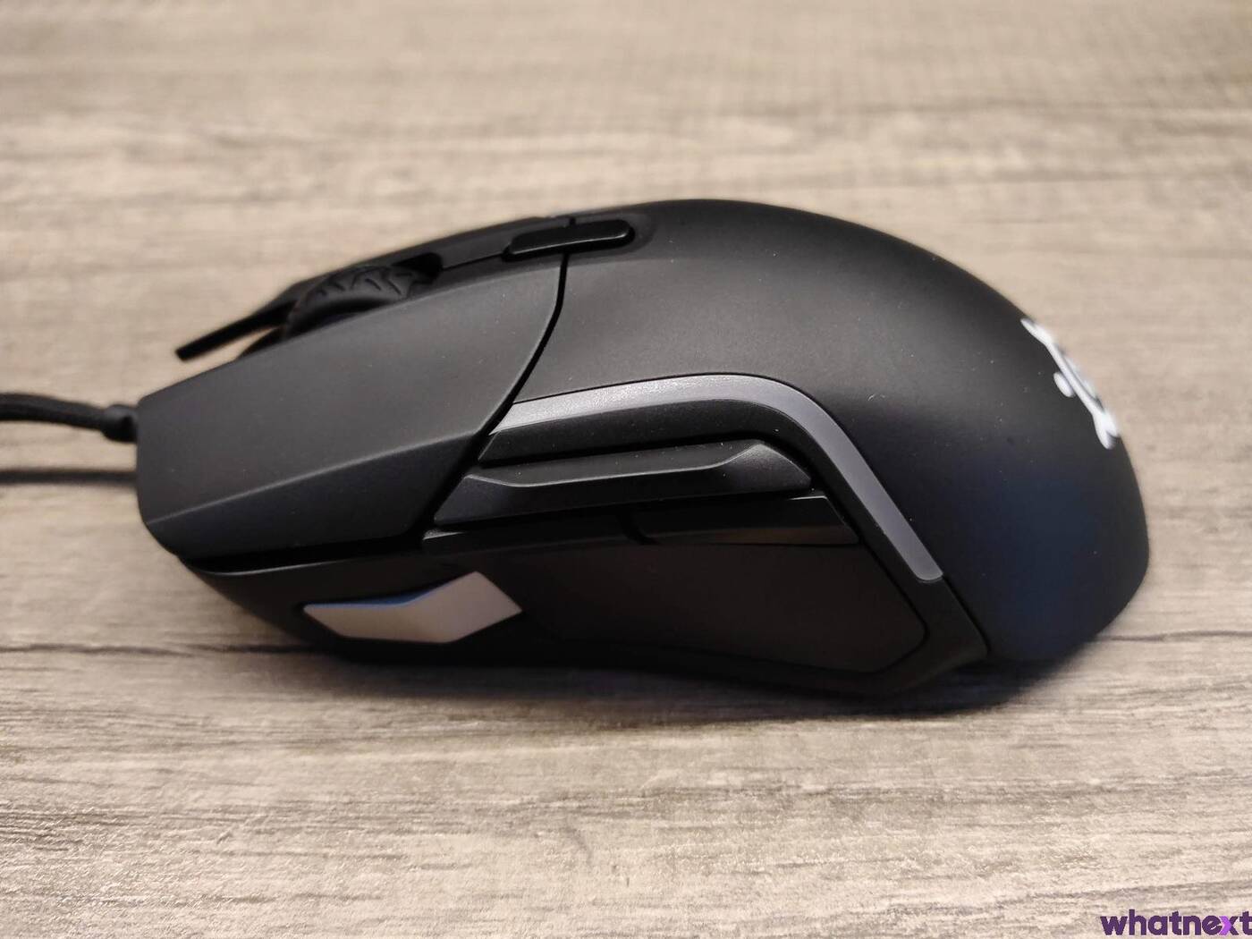 Jako że przycisków na tej myszy jest sporo, producent miał wiele pola do popisu, aby zaprojektować coś ciekawego. Z jednej strony Steelseries mogło bowiem sięgnąć po odróżnienie wszystkich grup przycisków od siebie pod kątem działania albo wręcz przeciwnie – zapewnić im wszystkim ten sam charakter w myśl wyższej spójności. Firma poszła w tym pierwszym kierunku.