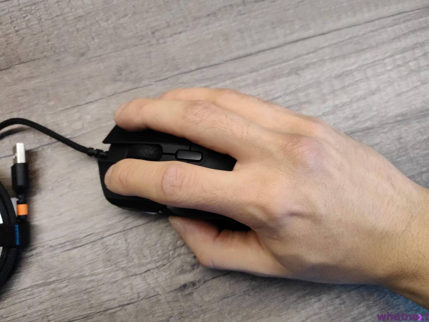 Tak więc, główne przyciski, czyli LPM i PPM zostały oparte na wytrzymałych przełącznikach mechanicznych o wytrzymałości na pył i wodę IP54, które zapewniają responsywny charakter działania przy krótkiej drodze pracy i nieprzesadnej twardości oraz głośności. Tradycyjne przyciski boczne, to ich totalne przeciwieństwo, co w przypadku dodatkowego srebrnego przycisku bezpośrednio przed kciukiem nabrało nieco łagodniejszego charakteru.