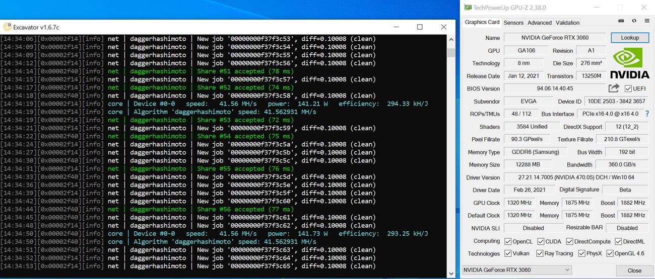 Nvidia RTX 3060 z pełną wydajności przy wydobywaniu kryptowalut