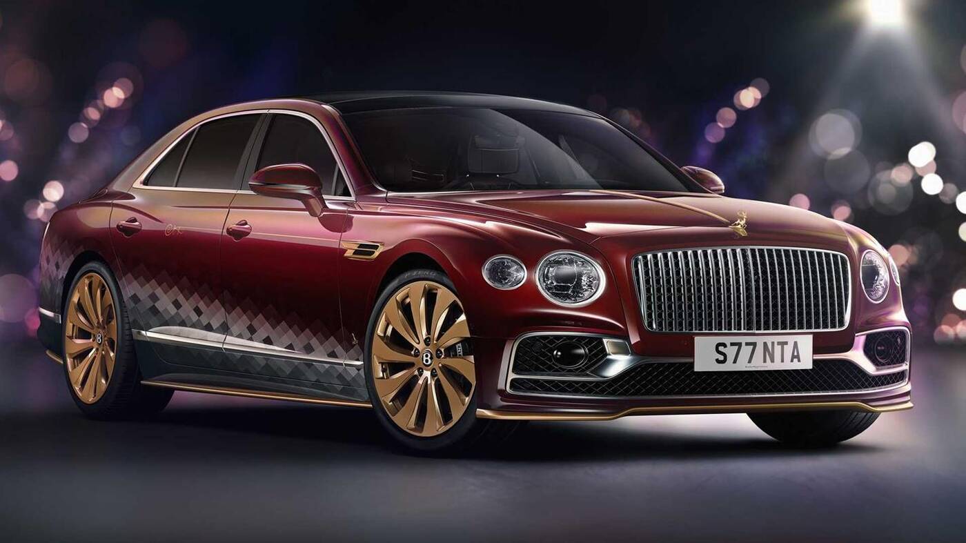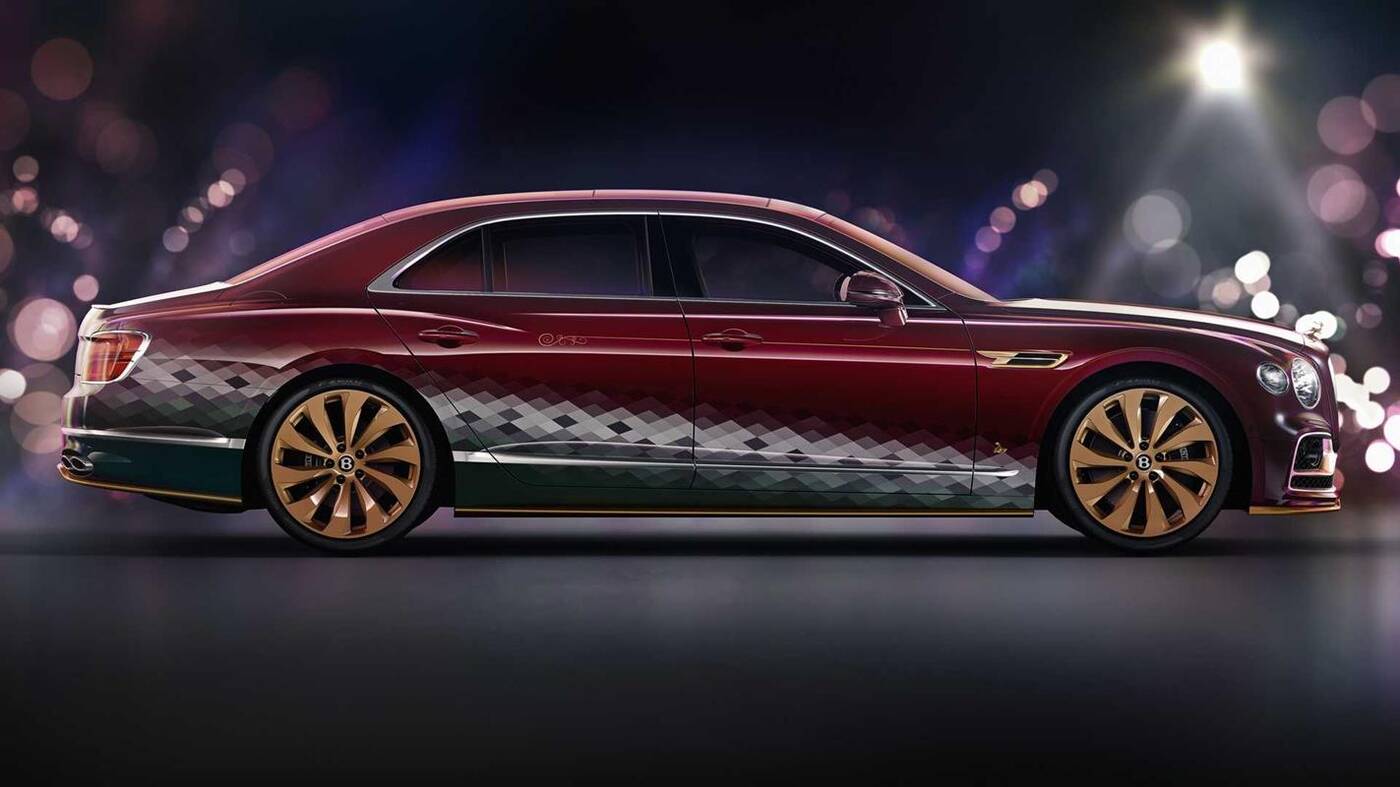 Jedyny w swoim rodzaju model Bentley Reindeer Eight czerpie oczywiście garściami z Flying Spur, stawiając na kolor rodem z bombek świątecznych (Cricket Bauble) i rombowe wzory w różnych odcieniach szarości na dolnej części korpusu. Elementy z włókna węglowego zdobią boczne progi, spojler pokrywy bagażnika i tylny dyfuzor.