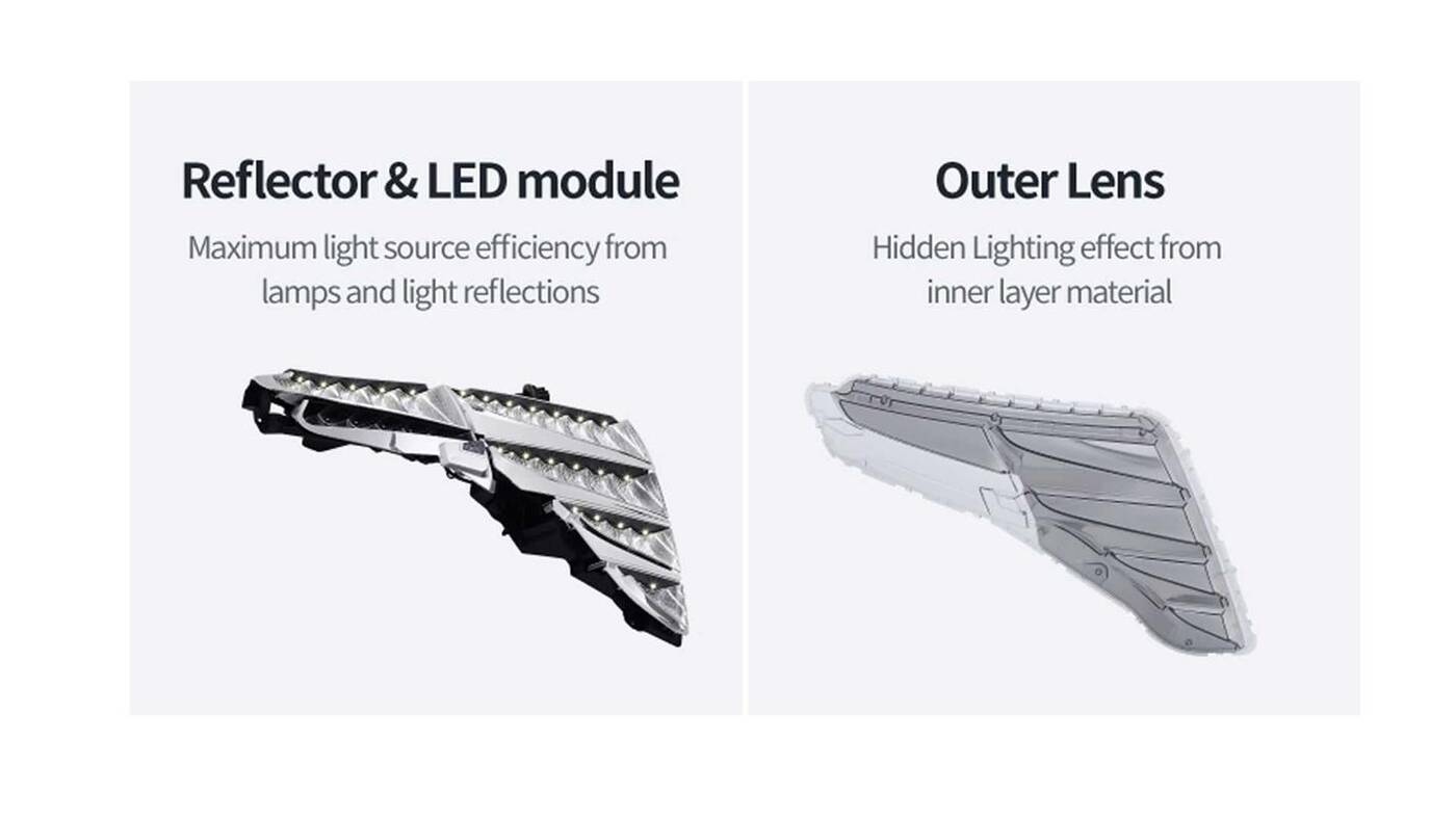 Krótko mówiąc, producent samochodów wykorzystuje technologię półlusterka, która polega na nałożeniu cienkiej warstwy metalowej powłoki na wewnętrzną część zewnętrznej soczewki. Ważną częścią uzyskanego efektu jest też przyciemniana chromowana kratka.