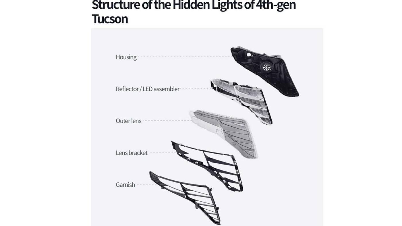 W rzeczywistości te sprawy oczywiście nie są proste, a montaż świateł przednich Tucson 2021 jest szalenie skomplikowany, jako że te wymagają wielu elementów. Dodatkowo projekt wymaga LEDów o większej mocy, aby były w stanie jasno świecić przez parametryczną kartkę. To dodatkowo wymaga od producenta zastosowania czujników temperatur.