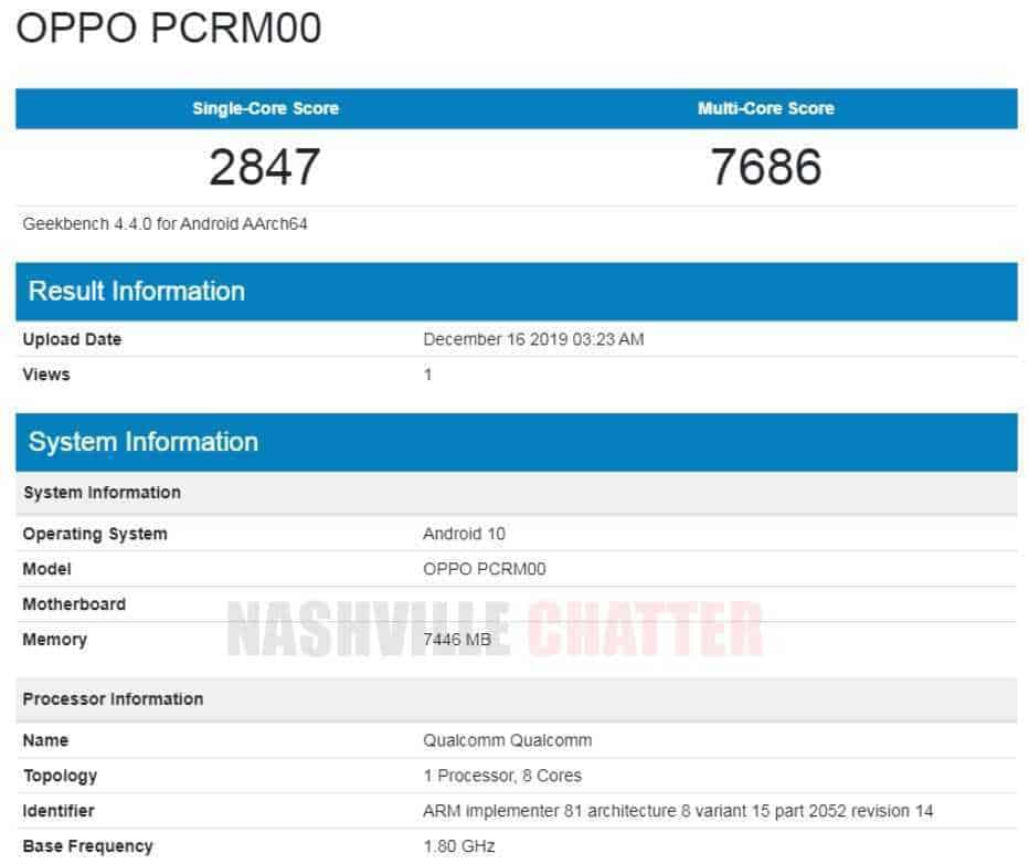 Reno 3 (wersja podstawowa, nie Pro) pojawił się też na Geekbench. Uzyskał on tam wynik 2847 punktów dla jednego rdzenia i 7686 punktów dla wielu rdzeni. Jest to bardzo dobry wynik jak na Snapdragona 765G. Smartfon zadebiutuje 26. grudnia w Chinach.