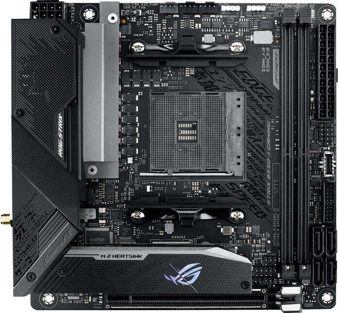 Kolejny model to ROG Strix B550-F Gaming (Wi-Fi). Tym razem mamy do czynienia z 12+2 fazową sekcją zasilania. Tak jak nazwa wskazuje płyta ma WiFi 6 oraz 2.5 GbE kartę ethernet. Zaraz za nim plasuje się ROG Strix B550-I Gaming. Tym razem jest to płyta micro ATX o 8+2 sekcji zasilania. Mimo to wyposażenie w dalszym ciągu jest znakomite.