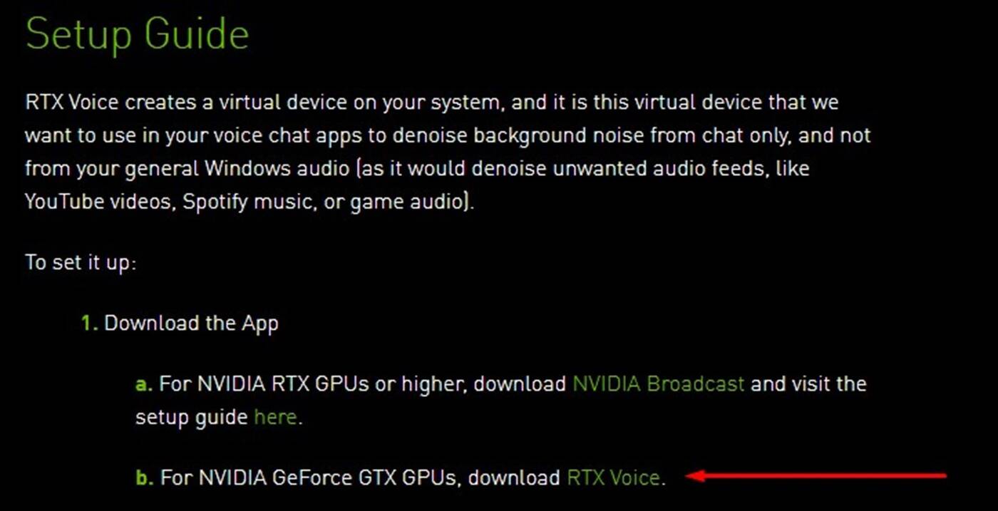 Aby zacząć pracować z RTX Voice na kartach GTX, musicie pobrać aplikację z tej strony i zadbać o najnowsze aktualizację Windowsa 10 oraz sterowników.