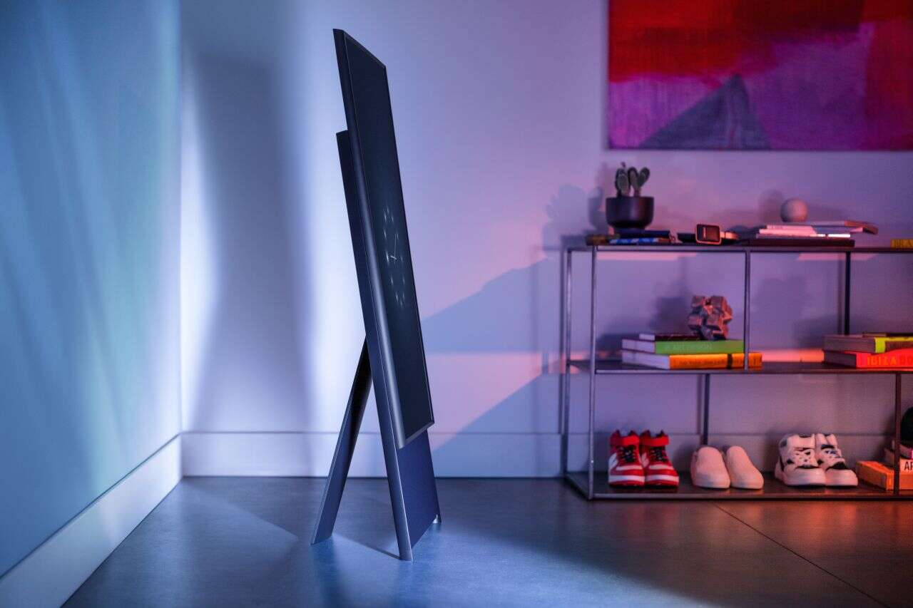 The Sero to również bardzo stylowy dodatek do każdego wnętrza, dzięki np. trybowi Portret, który z nudnego, czarnego ekranu przekształci go w ramkę ze zdjęciami czy animowaną grafiką. W orientacji pionowej można też wyświetlić na nim zegar. Podczas imprezy idealnie sprawdzi się Tryb Ambient+, dzięki któremu na ekranie mogą pojawiać się muzyczne wizualizacje. Jest też opcja wyświetlania bieżących informacji. Telewizor zainstalowany jest na specjalnym stojaku, nie trzeba więc dodatkowych mebli czy wieszania go na ścianie. Stojak umożliwia też obracanie się ekranu.