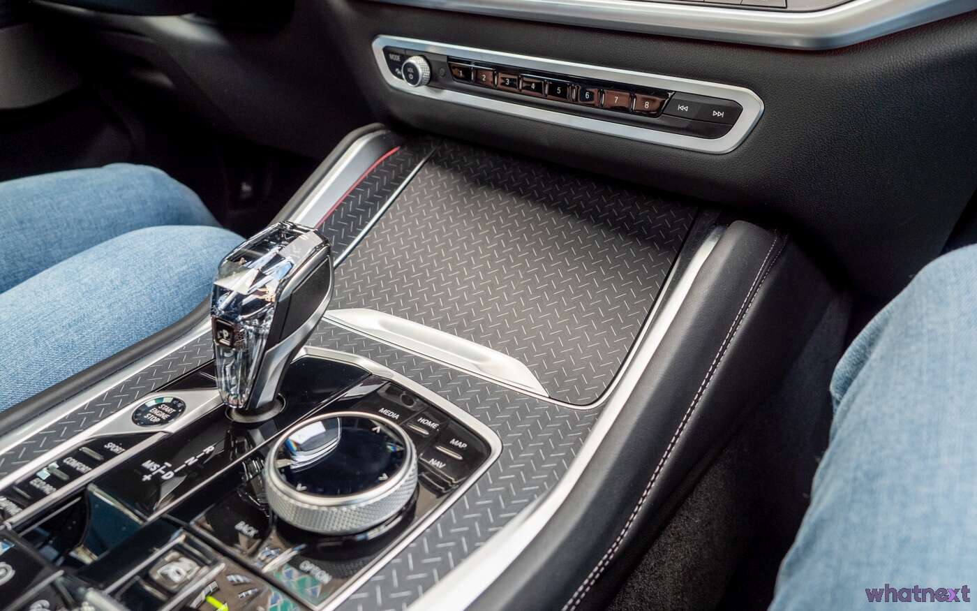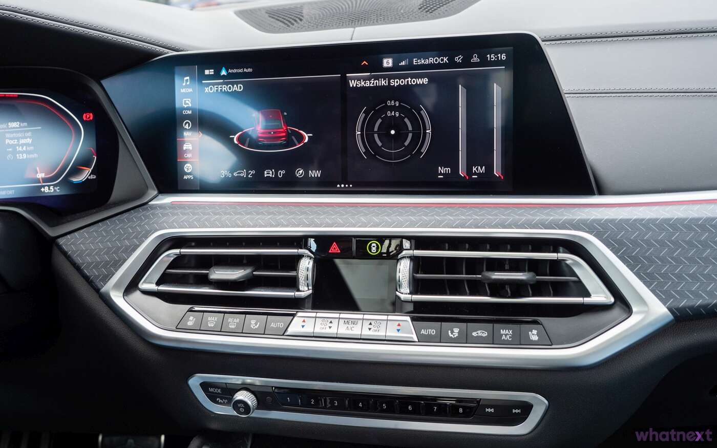 Chociaż auto jest naszpikowane elektroniką i przeróżnymi funkcjami, dotyczącymi zarówno komfortu wnętrza jak i właściwości jezdnych, kierowca nie jest zarzucony armią przycisków poupychanych w każdym wolnym miejscu konsoli. Niestety nie każdy producent rozumie, że zamienianie wnętrza auta w kokpit samolotu nie jest najlepszym pomysłem. Po to mamy monitory, interfejsy i pokrętła HMI, aby oszczędzić sobie podczas jazdy szukania tego jednego guziczka, który jest nam w danym momencie potrzebny. Tak więc chociaż X6 daje możliwość głębokiej customizacji, chociażby trybów jazdy, większość rzeczy robimy właśnie za pośrednictwem ekranu dotykowego umieszczonego na konsoli.