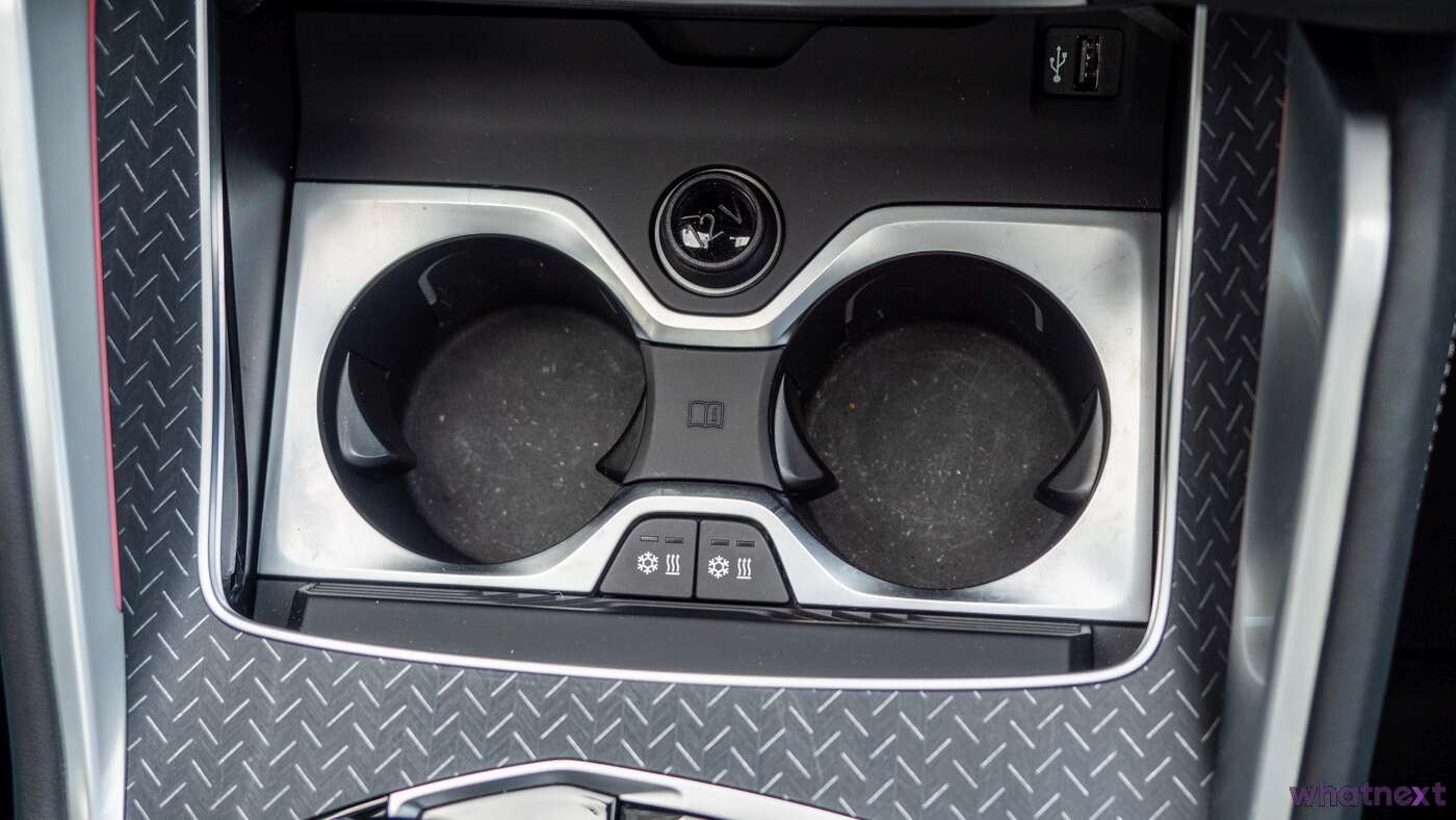 Na koniec zostawiłam swojego faworyta, ten drobny smaczek, o którym nie wiedziałam przed testem, a który wprawił mnie w prawdziwy zachwyt i do tej pory nie mogę przestać się nim zachwycać. Jest to regulacja temperatury w uchwytach na napoje! Tak, możemy sobie podgrzewać lub chłodzić to co pijemy podczas jazdy. Samochód informuje nas również o tym, która funkcja jest uruchomiona za pośrednictwem koloru oświetlenia uchwytów na napoje. Może się to wydawać drobnostką, ale moim zdaniem jest ukoronowaniem wszystkich funkcjonalności, w które wyposażone jest wnętrze, a które sprawiają, że z tego samochodu nie chce się wysiadać.