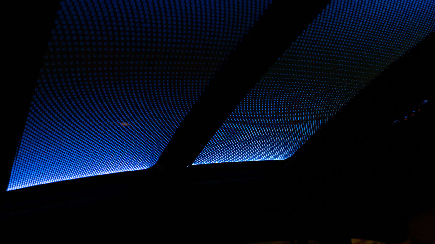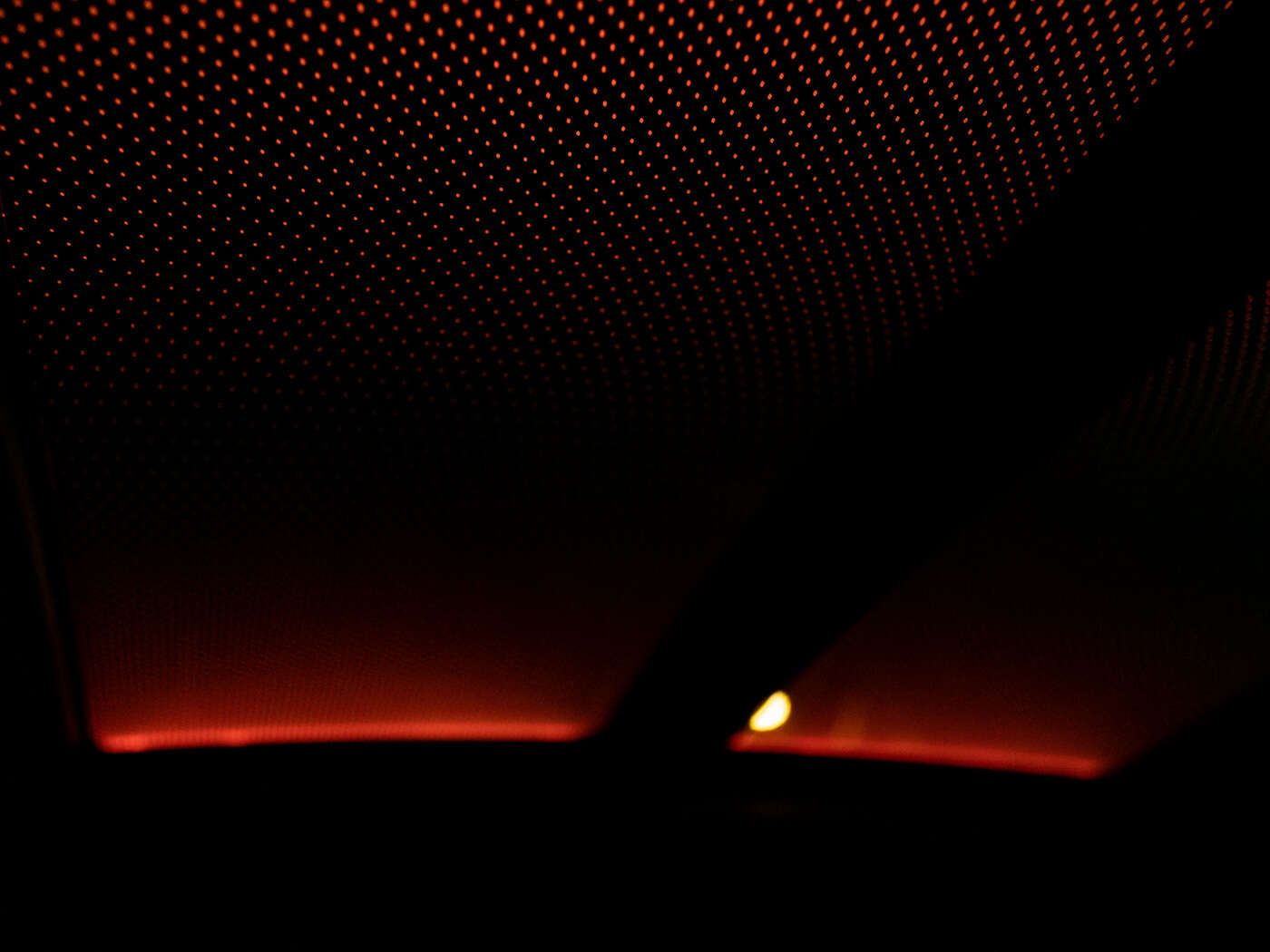 Kolejnym, o wiele bardziej znaczącym elementem jest oświetlenie wnętrza. Auto zostało wyposażone w zestaw pasków LED podświetlających drzwi, stopy kierowcy i pasażera, klamki, konsolę i przedni tunel. Podświetlane są też drzwi z tyłu, zagłówki przednich foteli oraz szyberdach. Chociaż tych świateł jest sporo, możemy dowolnie wybrać ich jasność oraz jeden z kilku proponowanych przez producenta kolorów, dzięki czemu nie rozpraszają one uwagi kierowcy podczas jazdy. Przeciwnie, ułatwiają obsługę auta i, co tu dużo mówić, uprzyjemniają podróż.