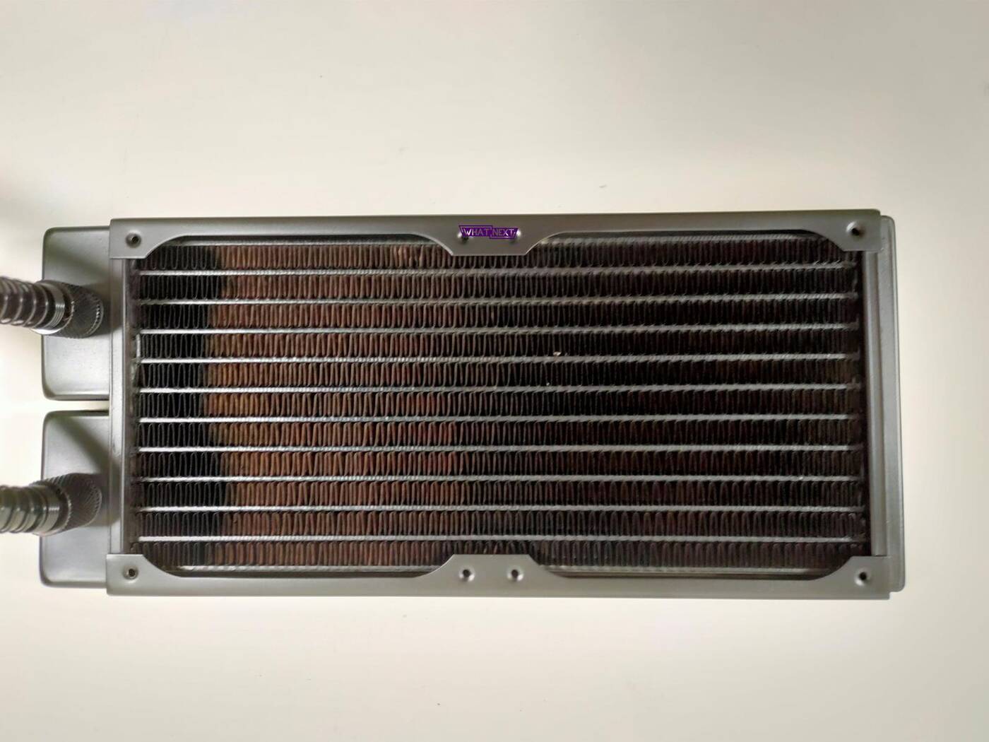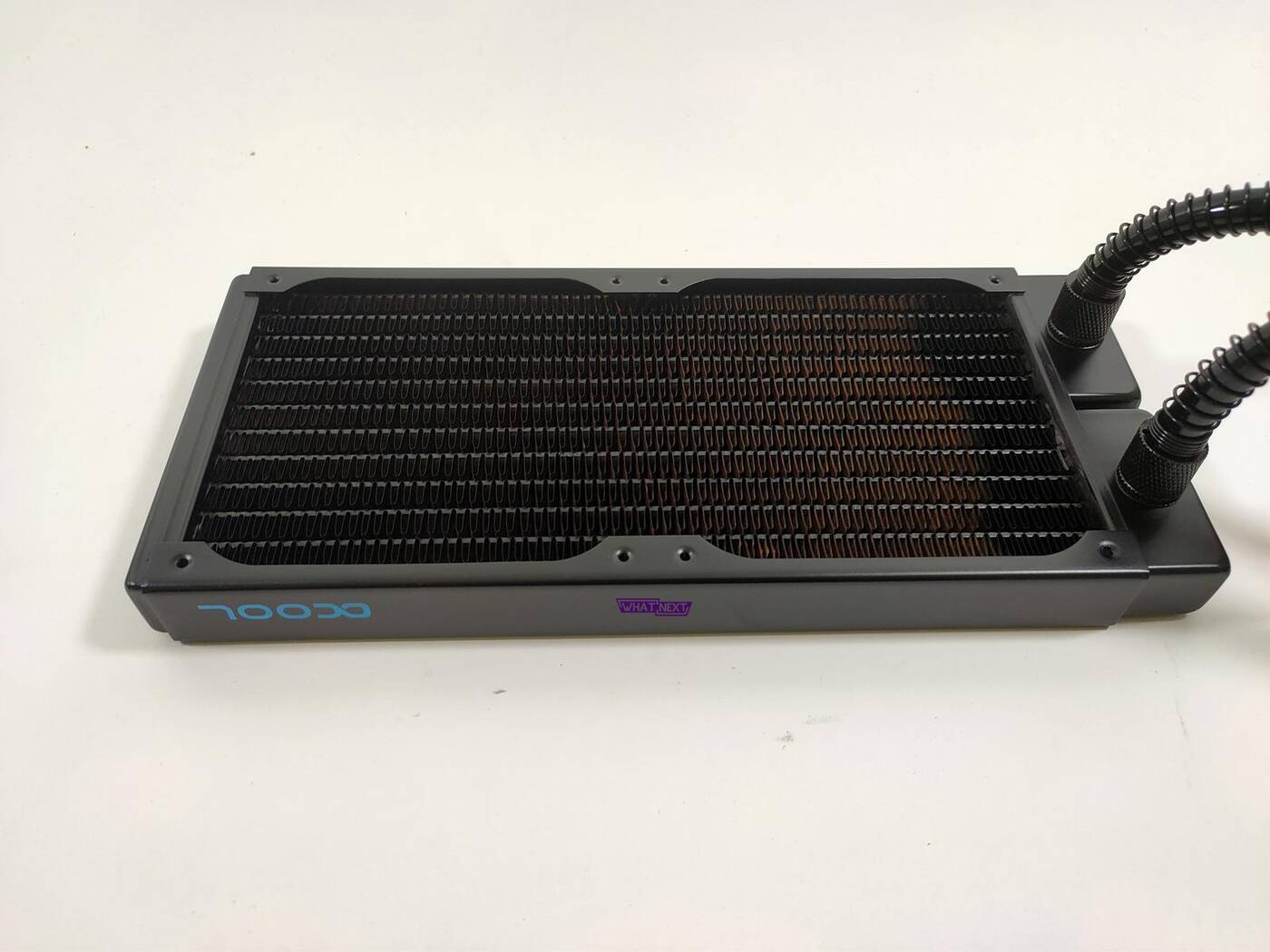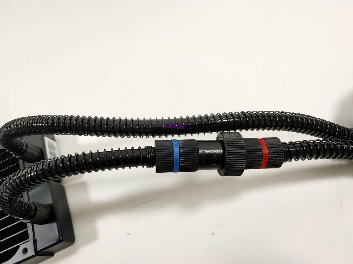Chłodnica ma wymiary 270 mm x 120 mm x 25 mm i została wykonana w 100% z miedzi. Wychodzą z niej dwa bardzo elastyczne węże o długości 32 cm. Pośrodku jednego z nich możecie zobaczyć dwie złączki. Można je łatwo i szybko odkręcić i do układu podłączyć kolejny blok wodny czy inną część.