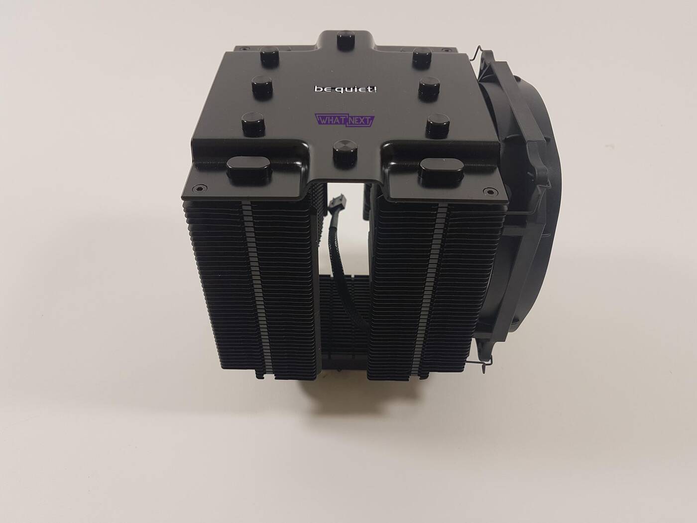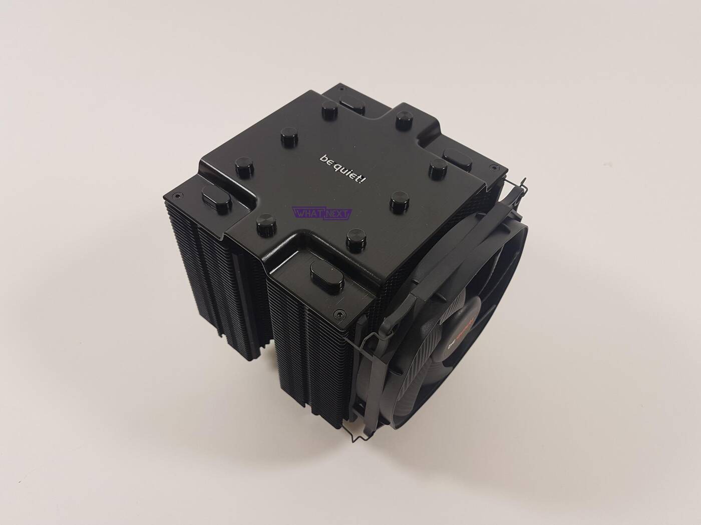 Be quiet! przyzwyczaiło nas już do eleganckiego wyglądu swoich chłodzeń. Nie inaczej jest w tym wypadku. Dark Rock Pro TR4 jest całe czarne dzięki czemu świetnie będzie się prezentowało w obudowach. Jego dokładne wymiary to 162,8 mm x 136 mm x 120,7 mm i waży on 1,18 kg. Dark Rock Pro TR4 podstawkę wykonaną na idealne lustro oraz siedem 6 mm ciepłowodów. Jest to konstrukcja dwu wieżowa posiadająca specjalnie wykonane finy (jest ich 90 sztuk), które mają pozytywnie wpływać na przepływ powietrza. Jakość wykonania jest bardzo dobra i nie mam co firmie zarzucić.