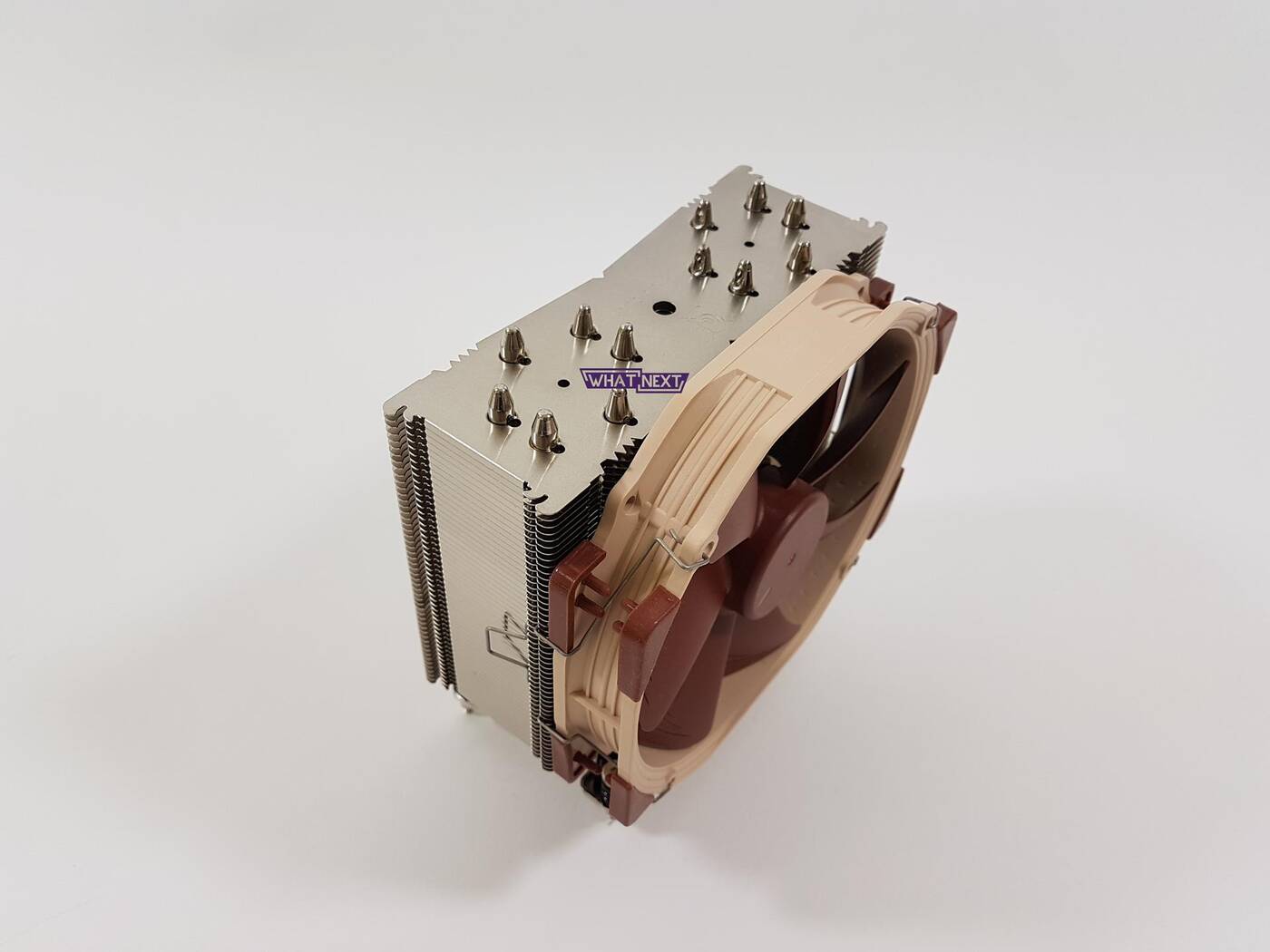 Dołączony wentylator to model NF-A15 PWM. Jego maksymalna prędkość wynosi 1500 RPM, przepływ powietrza 140,2 M3/h a głośność 24,6 dBA. Dzięki adapterowi L.N.A. można ograniczyć maksymalne obroty do 1200 RPM. Jak sama nazwa wskazuje, śmigło posiada PWM.