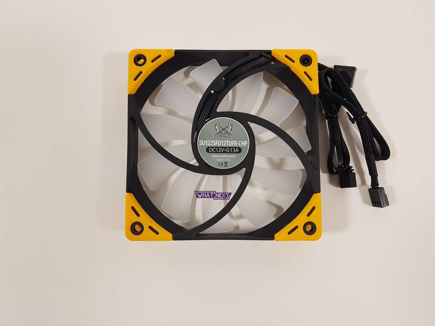 Wentylator to podświetlany model Kaze Flex 120 PWM. Jego parametry są identyczne, jak u poprzednika, czyli maksymalnie 1200 RPM, 51,17 CFM oraz 24,9 dBA. Różnica dotyczy kolorystyki oraz dodatkowego wyjścia RGB 4 pin, które można, a nawet należy podłączyć do płyty głównej.