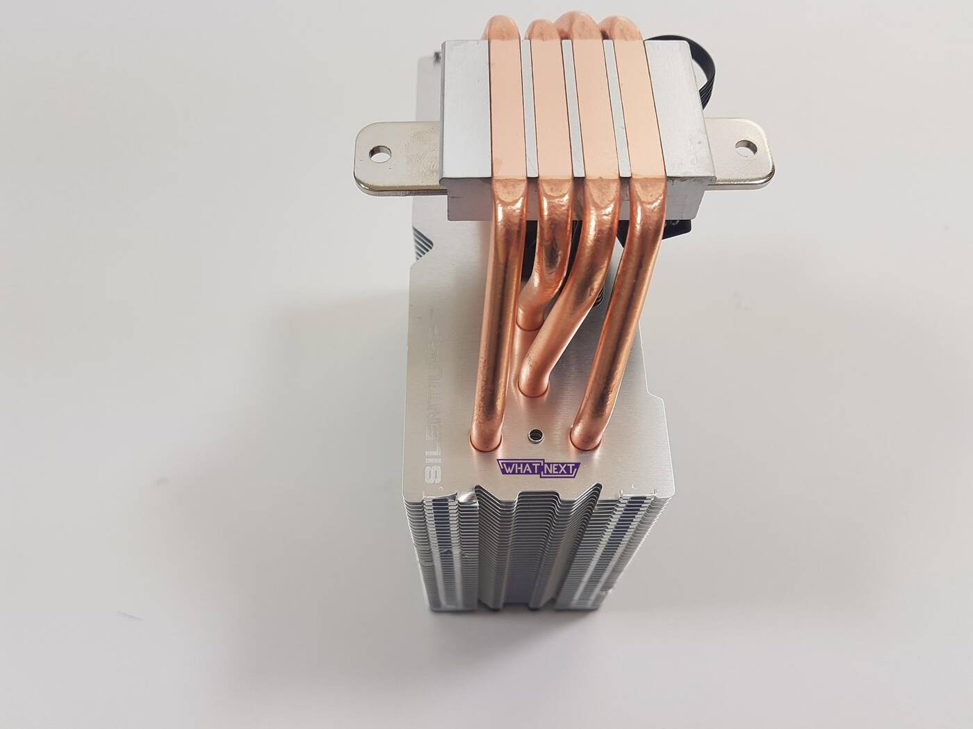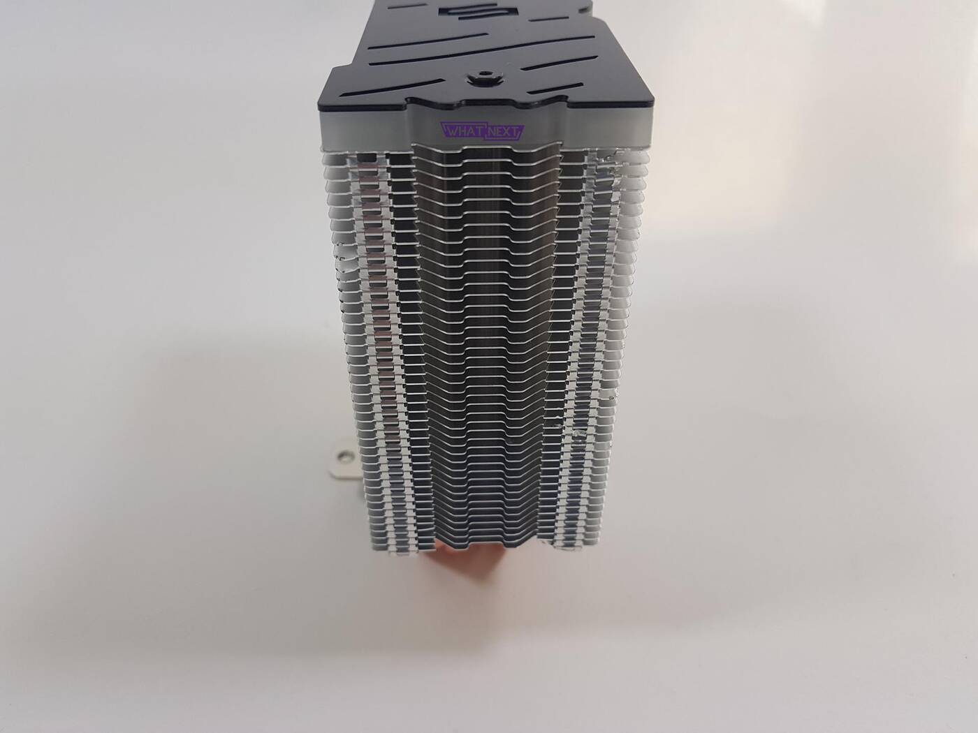 Chłodzenie wygląda naprawdę świetnie. Podświetlany wentylator wraz z podświetlanym topem chłodzenia naprawdę robi robotę. Dodatkowo na górze jest czarna nakładka – SilentiumPC musiało to naprawdę dobrze przemyśleć. Chłodzenie ma wymiary 125 mm x 78 mm x 146 mm i waży 960 g. Posiada ono cztery 6 mm ciepłowody, które stykają się bezpośrednio z procesorem. Jakość wykonania jest całkiem niezła i nie mam co zbytnio zarzucić producentowi,