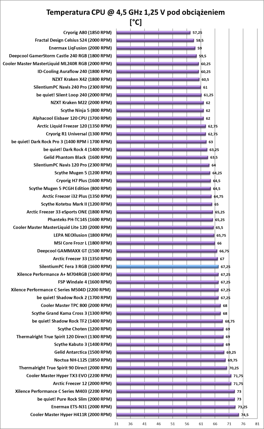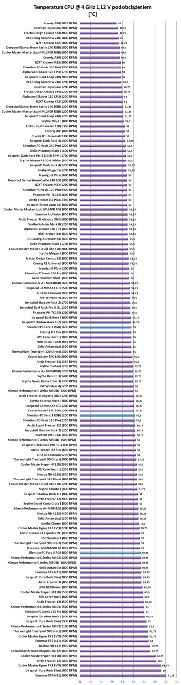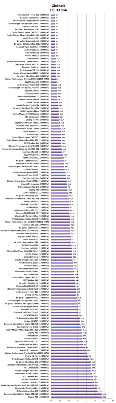Chłodzenie wypadło w testach zgodnie z oczekiwaniami. Pozwala ono na mały overclocking, a przy mniejszych obrotach także daje radę. Pod względem kultury pracy jest różnie. Na maksymalnych obrotach chłodzenie jest głośne, natomiast już na 1200 RPM praktycznie ciężko będzie je usłyszeć. Generalnie wyniki są spodziewane – cooler wypadł dokładnie tak jak myślałem. Nie zaskoczył mnie pod względem wydajności ani pozytywnie ani negatywnie.