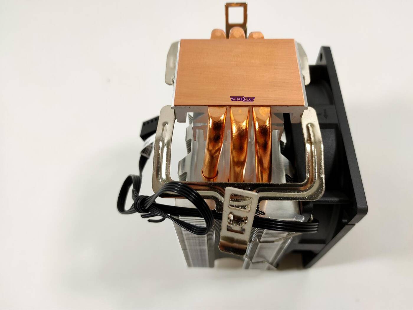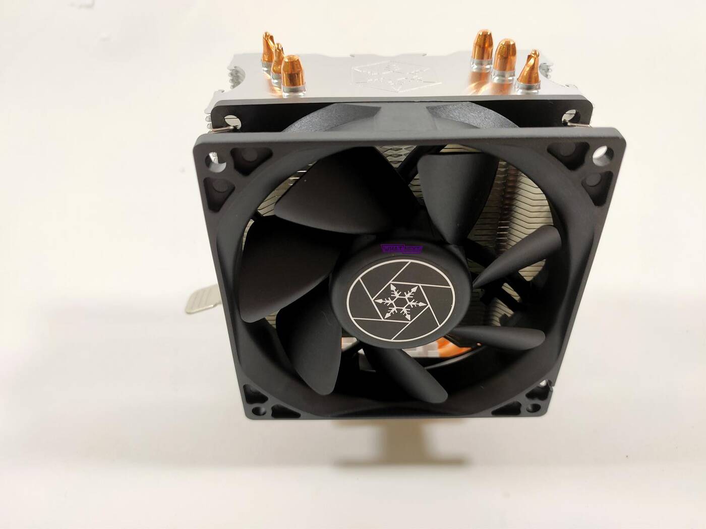 Wraz z radiatorem dostajemy 92 mm wentylator. Jego maksymalna prędkość to 2800 RPM, głośność 34,8 dBA a przepływ powietrza 56,1 CFM. Jest to dosyć podstawowa konstrukcja, która niczym się nie wyróżnia. Ma ona PWM więc obrotami może sterowac płyta główna.